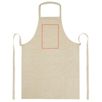 Põll 200 g/m² taaskasutatud puuvillasest polüestri segust. Sellel on 2 kõrvuti asetsevat taskut, mille kombineeritud suurus on 45 x 20 cm, ja 1-meetrine lipsukinnis. Taaskasutatud puuvilla toodetakse tarbimiseelsetest jäätmetest, mis tekivad tekstiilitehastes lõikamisprotsessi käigus. Taaskasutatud puuvilla olemuse tõttu võib esineda väga väikest värvimuutust. See funktsioon lisab selgelt autentsema välimuse. Kaelarihma pikkus: 55 cm.