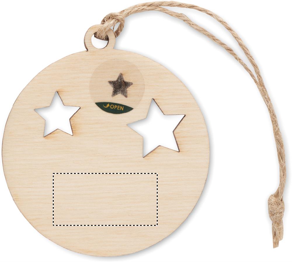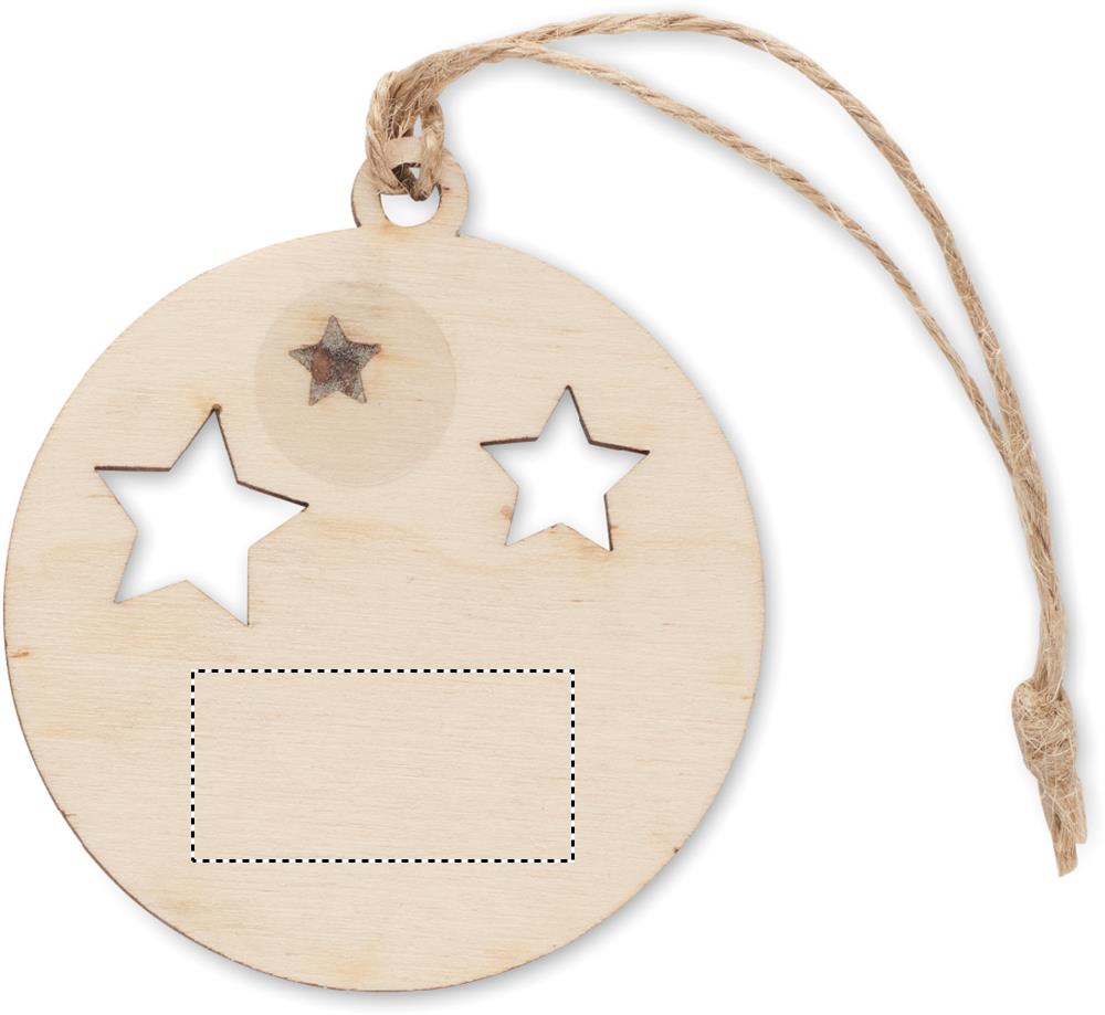Puidust ümara kujuga dekoratiivne jõulukuul džuudist nööriga, lisatud juurde kuuseseemned. Pakend: kraftpaberist ümbrik. Valmistatud EL-is.