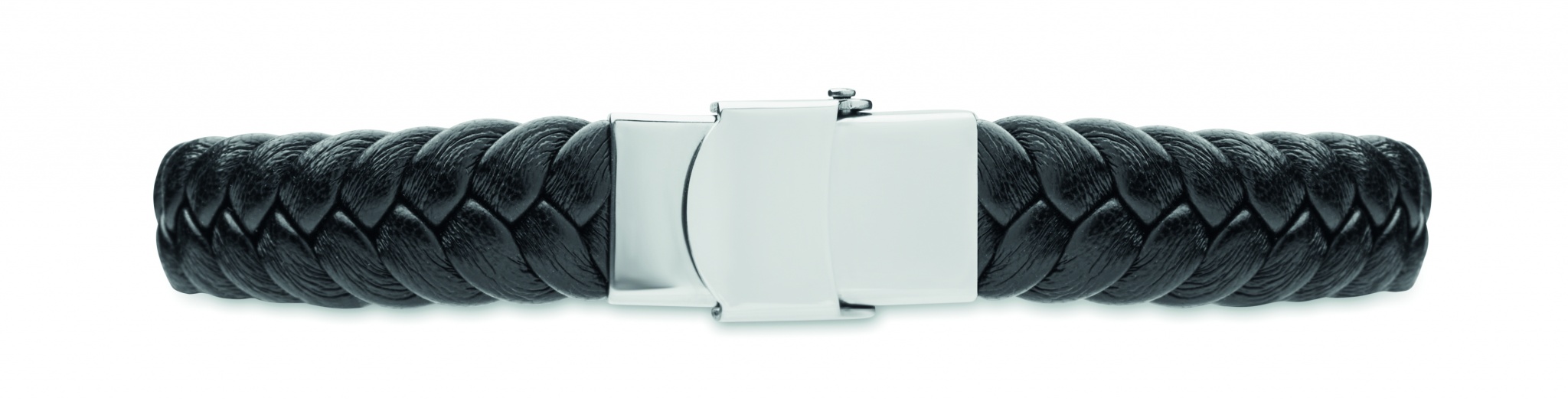 Punutud kunstnahast manseti käevõru poleeritud terasest riistvaraga. Push-lock lukk. Randme ümbermõõt: 21 cm.
