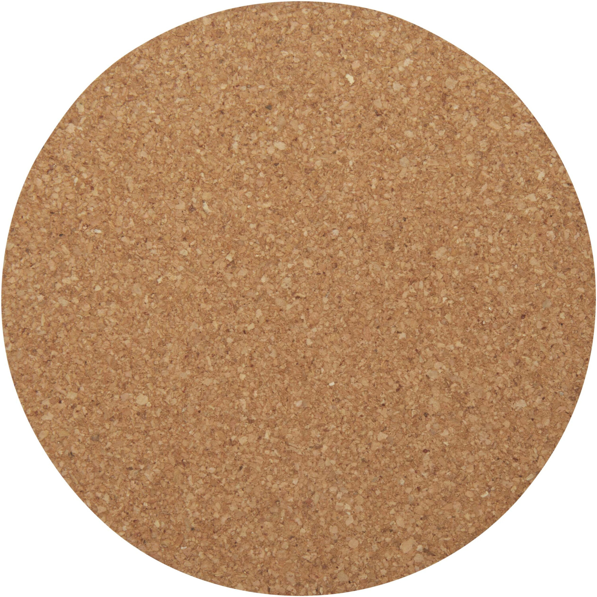 Säästlikest ja vastutustundlikumatest materjalidest valmistatud korgist ümmargune tassialus. Suurus: 10 x 0,5 cm.