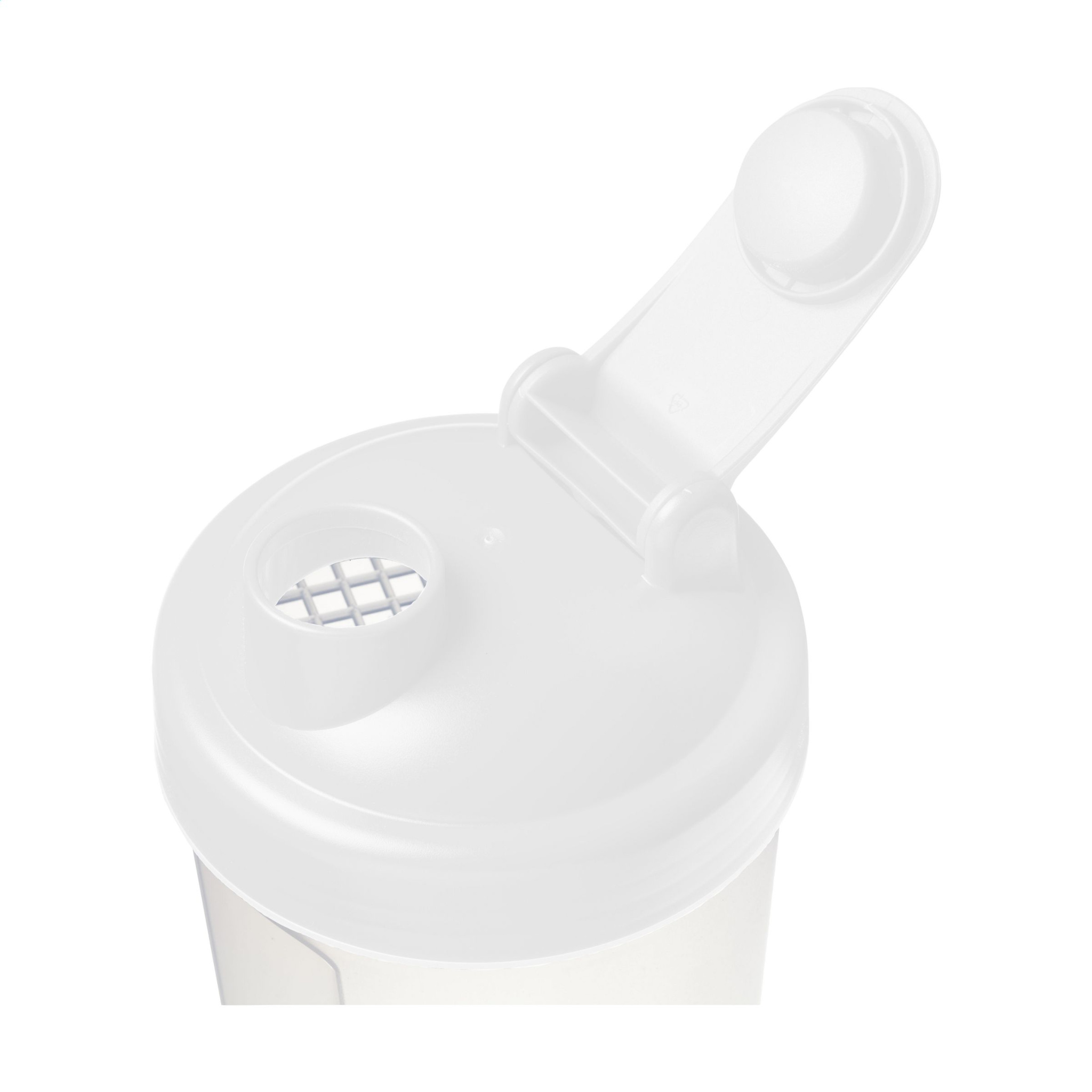 Funktsionaalne läbipaistev plastikust loksutops valgujookide segamiseks. Sisu näitamisega (50 ml kohta). Keeratav kork on varustatud lukustatava avaga. Sisu 600 ml. BPA-vaba ja toiduga heaks kiidetud. Valmistatud Saksamaal.