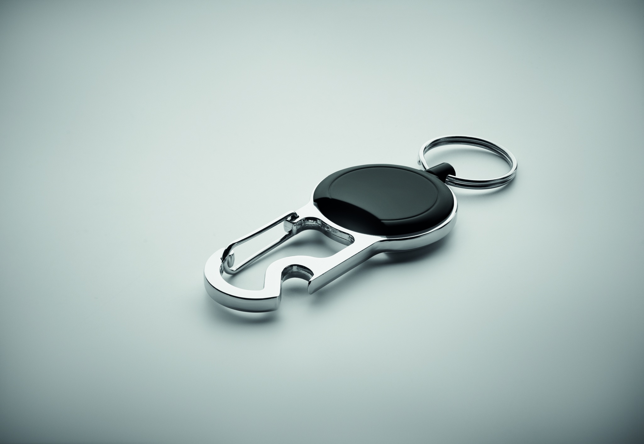 Sissetõmmatav ABS-st märgihoidja klambri, võtmehoidja ja pudeliavajaga.