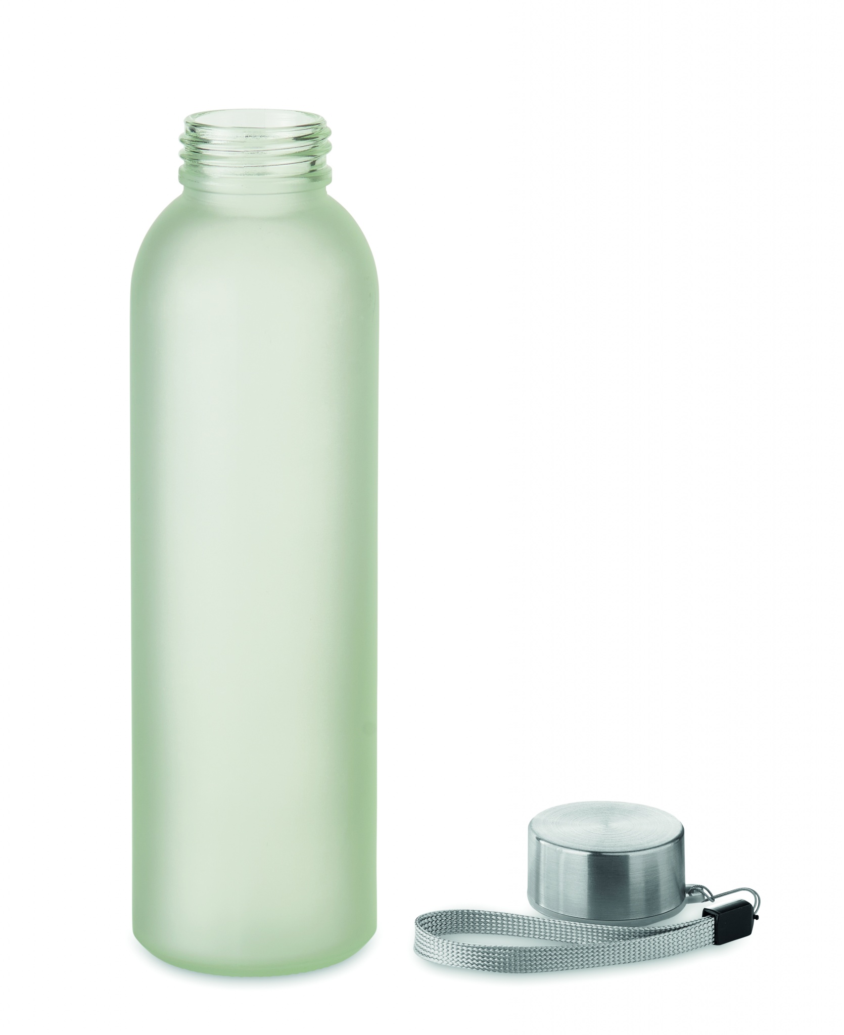 Spetsiaalse kattega klaaspudel sublimeerimiseks. Sellel on roostevabast terasest kaas ja riputusrihm. Mahutavus: 500 ml.
