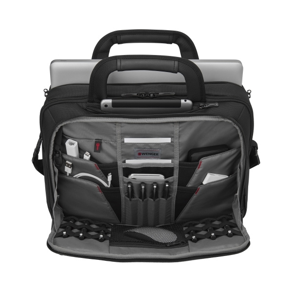 Kahe kambriga vastupidavast ballistilisest kangast kott. Sisaldab SmartGuart sülearvuti kaitset, reguleeritav 14` kuni 16`, SmartOrg ülim korraldaja suure tõmblukuga, QuickAccess 10` tahvelarvuti tasku, käru Pass-Thru kohvri teleskoopkäepidemele kinnitamiseks, ülimugav veosang ja eemaldatav kõrge. -mugavus õlarihm.Tootja garantii: 3 aastat.