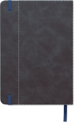 A5 märkmik 40% ulatuses taaskasutatud tarbimisjärgsest pastelset värvi kõvast PU-kaanest ja 60% ulatuses PU-kaanest. 160 lehekülge, 70 g/m² taaskasutatud paberist (80 lehte). Märkmikuga samas toonis kummipaela ja järjehoidjaga.
