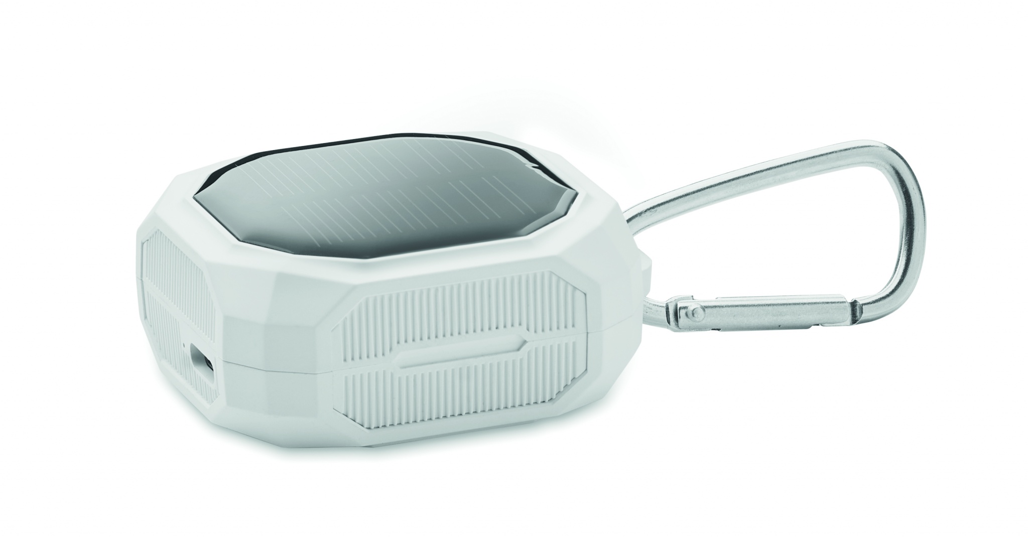 ABS True Wireless Stereo (TWS) 5.3 juhtmevabad kõrvaklapid mikrofoni ja karabiiniga. 30 mAh aku. Mänguaeg ca. 4 tundi. Sellel on päikeseenergia laadimise aku. Automaatne sidumine. Kaasas C-tüüpi laadimiskaabel ja 200 mAh laadimisjaam.