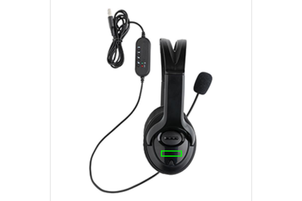 Logotrade meene foto: Üle kõrva juhtmega töötav peakomplekt