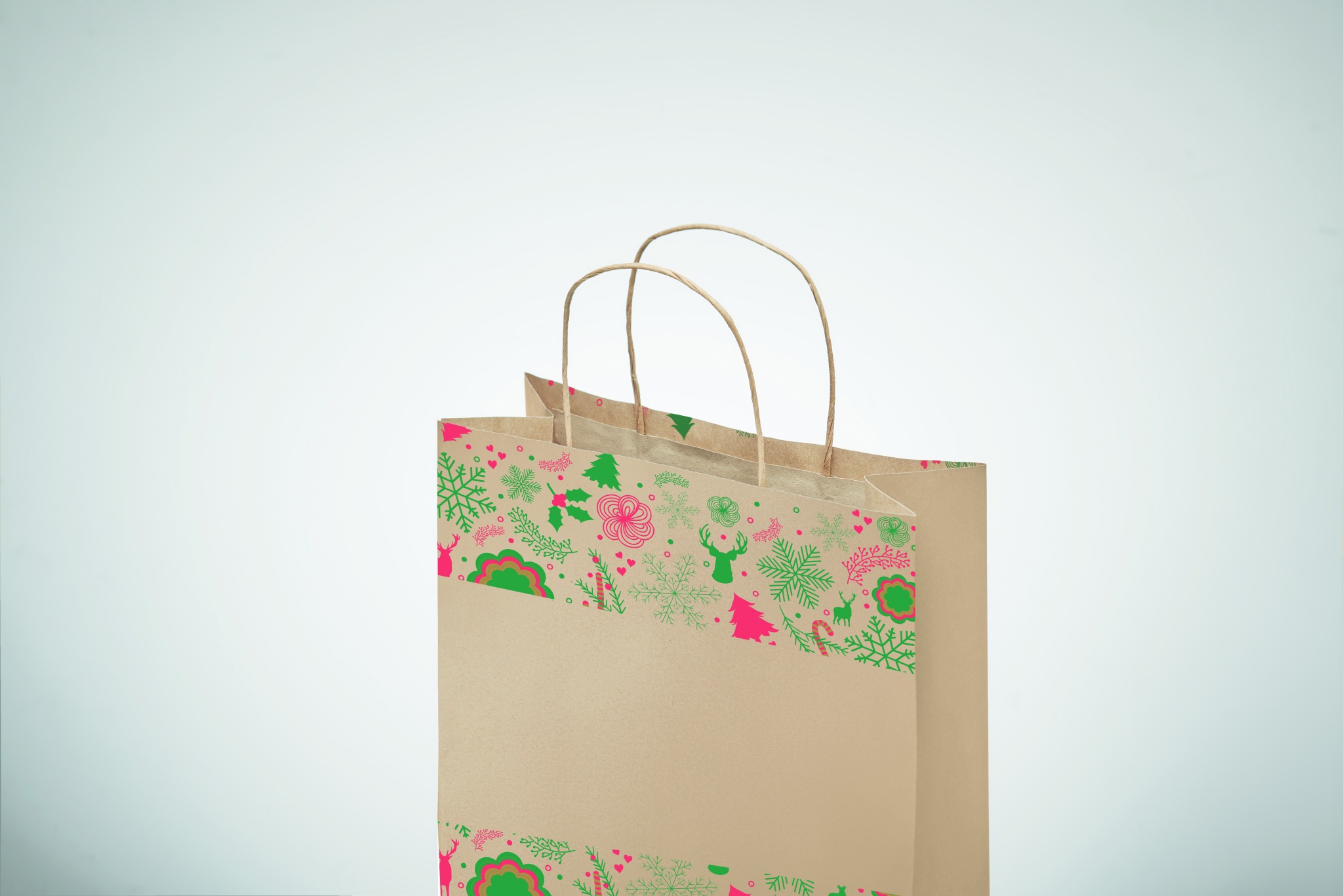 Väike jõulukinke paberkott (50% taaskasutatud) kott. 90 gr/m². Valmistatud EL-is.