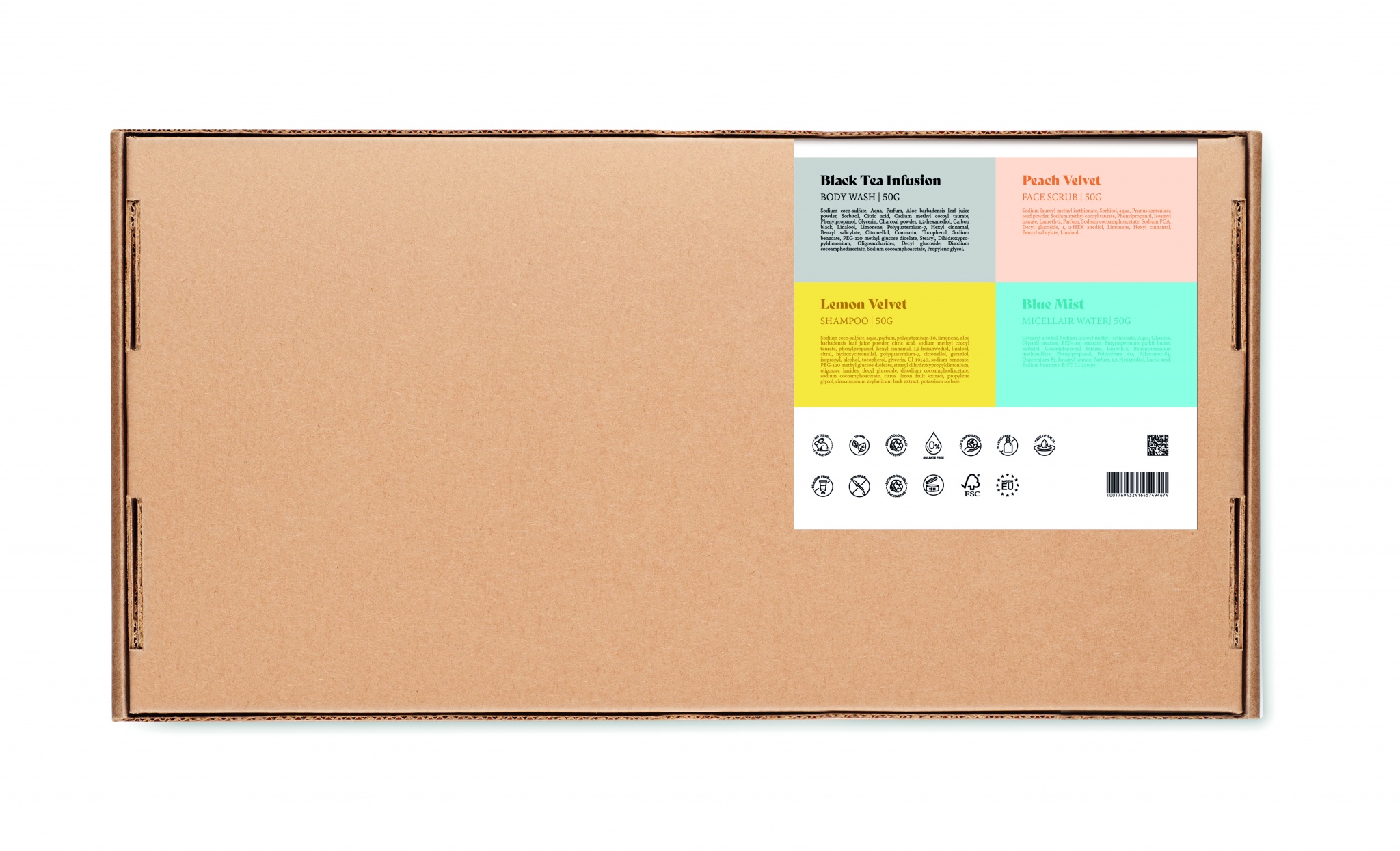 Unisex ilukingituste komplekt firmalt Branded By Earth. Sisaldab vegan 50gr kehapesuvahendit, šampooni, näokoorijat, mitsellaarveekotti ja korgist seebialuseid. Kõik tükid pakitud paberisse. Esitatakse taaskasutatud paberist karbis. Valmistatud EL-is. Kork on 100% looduslik materjal. Selle struktuurse olemuse ja pinna poorsuse tõttu võib lõpptulemus eseme kohta esineda kõrvalekaldeid.