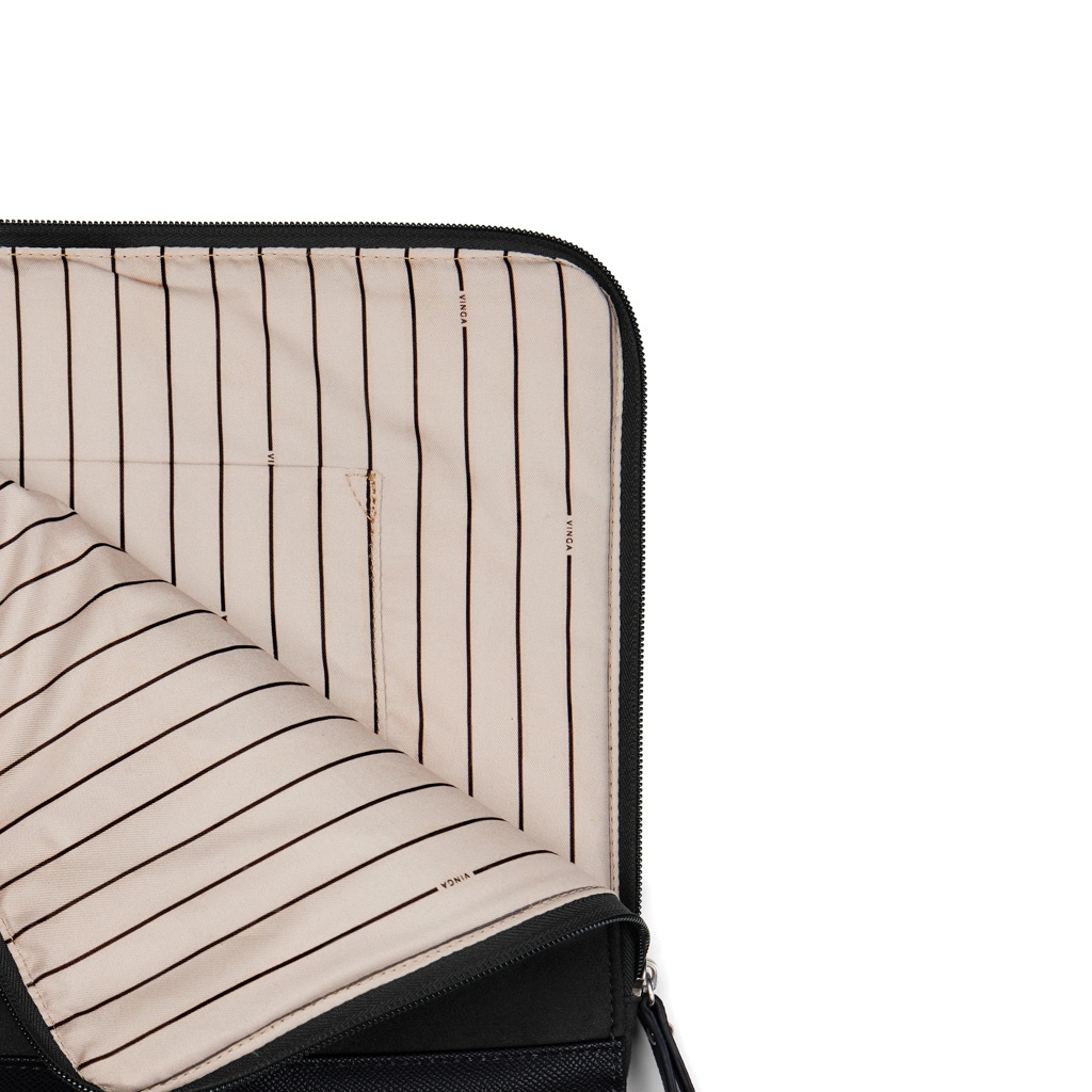 Kaitske oma sülearvuti stiilselt selle elegantse polsterdatud ümbrisega. Sellel on eriti pikk tõmblukk, mis hõlbustab juurdepääsu. Sees mugav tasku väiksemate asjade jaoks. Pange tähele: ekraani mõõtmed võivad sülearvuti mõõtmetest erineda. Marlow sari on valmistatud taaskasutatud kunstseemisnahast, PU detailidega ja voodriga taaskasutatud polüestrist. Viimistletud elegantse hõbedase riistvaraga. RCS (Recycled Claim Standard) sertifitseeritud RSC sertifikaat tagab, et kogu taaskasutatud materjalide tarneahel on sertifitseeritud. Taaskasutatud kogusisaldus põhineb toote kogumassil. See toode sisaldab 49% RCS-sertifikaadiga taaskasutatud polüestrit ja 3% RCS-sertifikaadiga taaskasutatud polüuretaani.