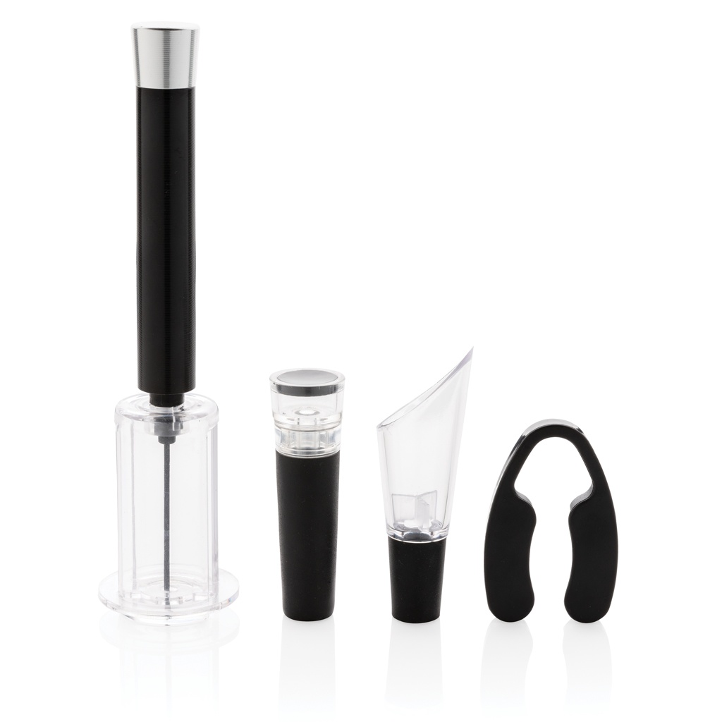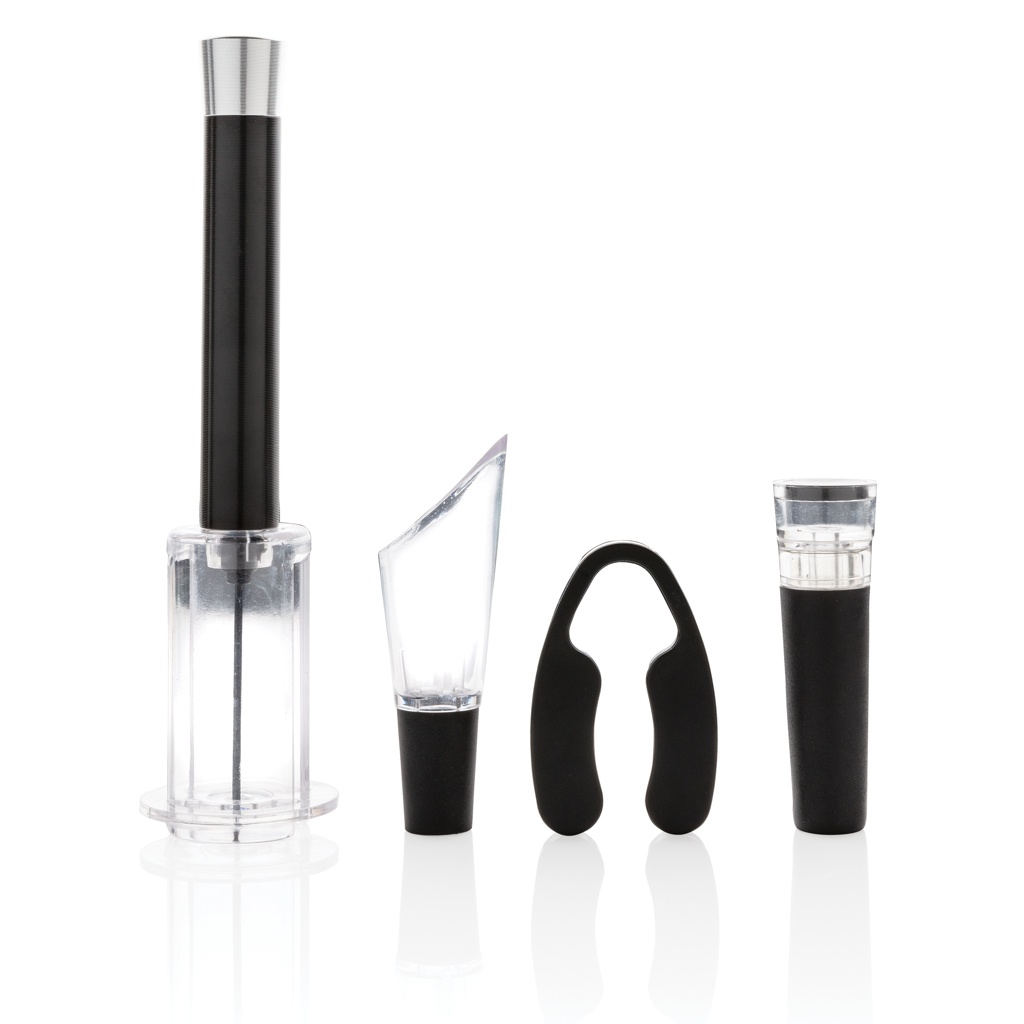 Selles 4-osalises veinikomplektis on kõik, mida vajate oma lemmikveinide avamiseks, serveerimiseks ja säilitamiseks. Komplekt koosneb õhupumbaga veiniavajast, fooliumilõikurist, vaakumpumbaga veinikorgist ja aeraatoriga veinivalajast. Pakitud luksuslikku kinketuubi.