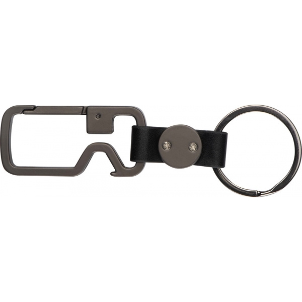 Grafiidivärvi võtmehoidja karabiiniga, võtmehoidja ja pudeliavaja. Ümarale tükile graveeritakse teie logo.