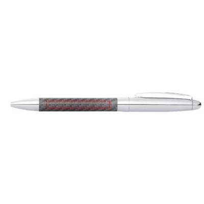 Klassikalise disainiga kuulipunkt läikiva ülemise silindri ja süsinikkiust detailidega alumisel torul. Sealhulgas silindriga kinkekarp.