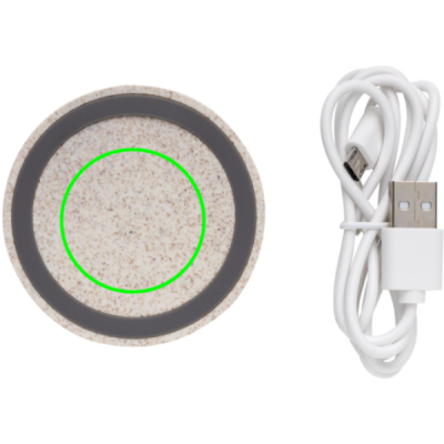 Logo trade mainoslahja kuva: 5W langaton latausalusta vehnänoljesta
