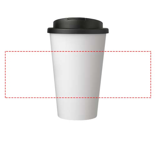 Americano® 350 ml muki, läikyttämätön kansi, Tasainen musta/valkoinen