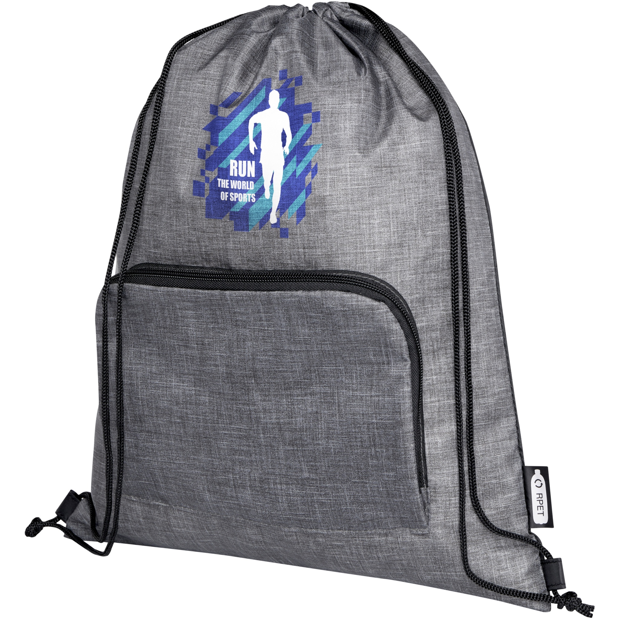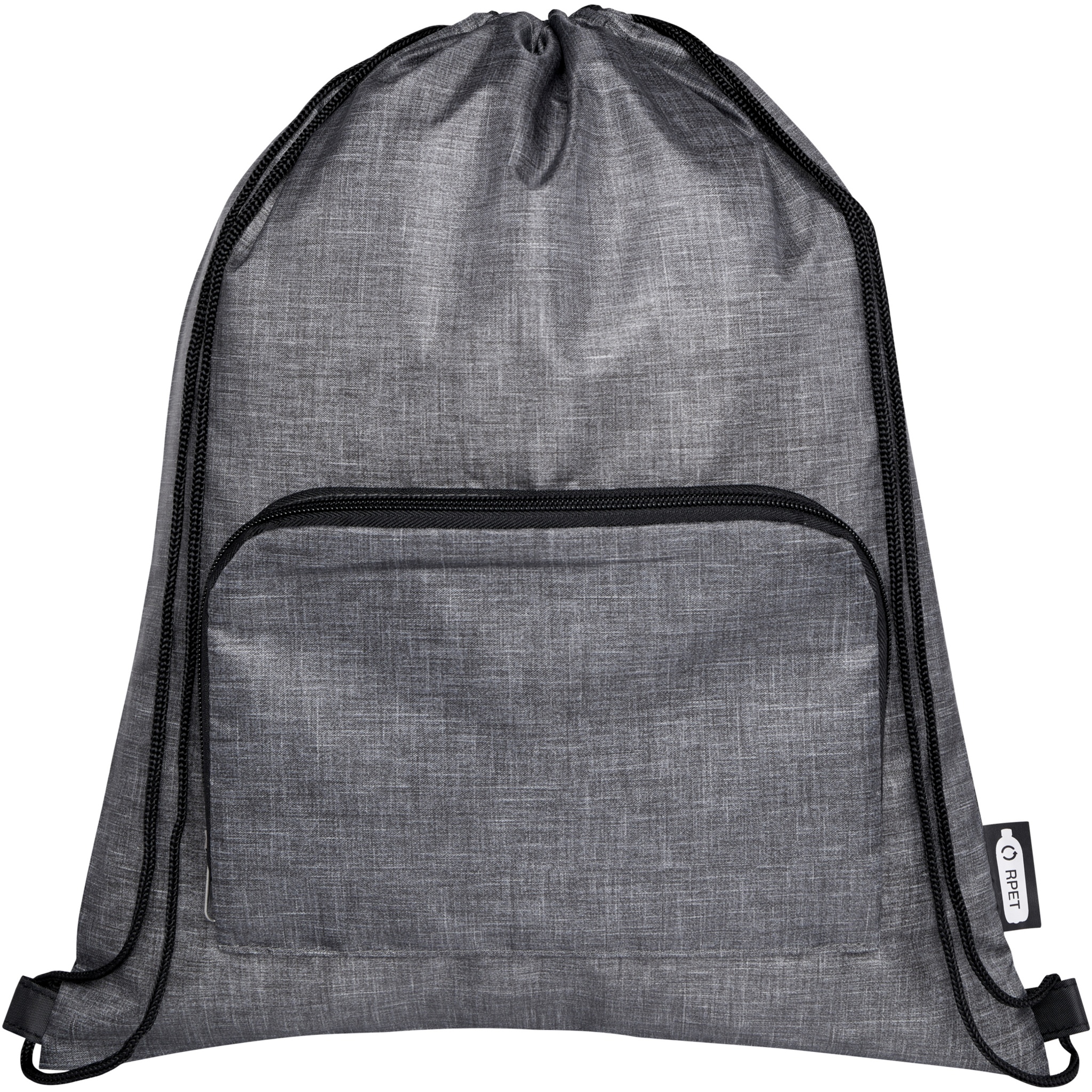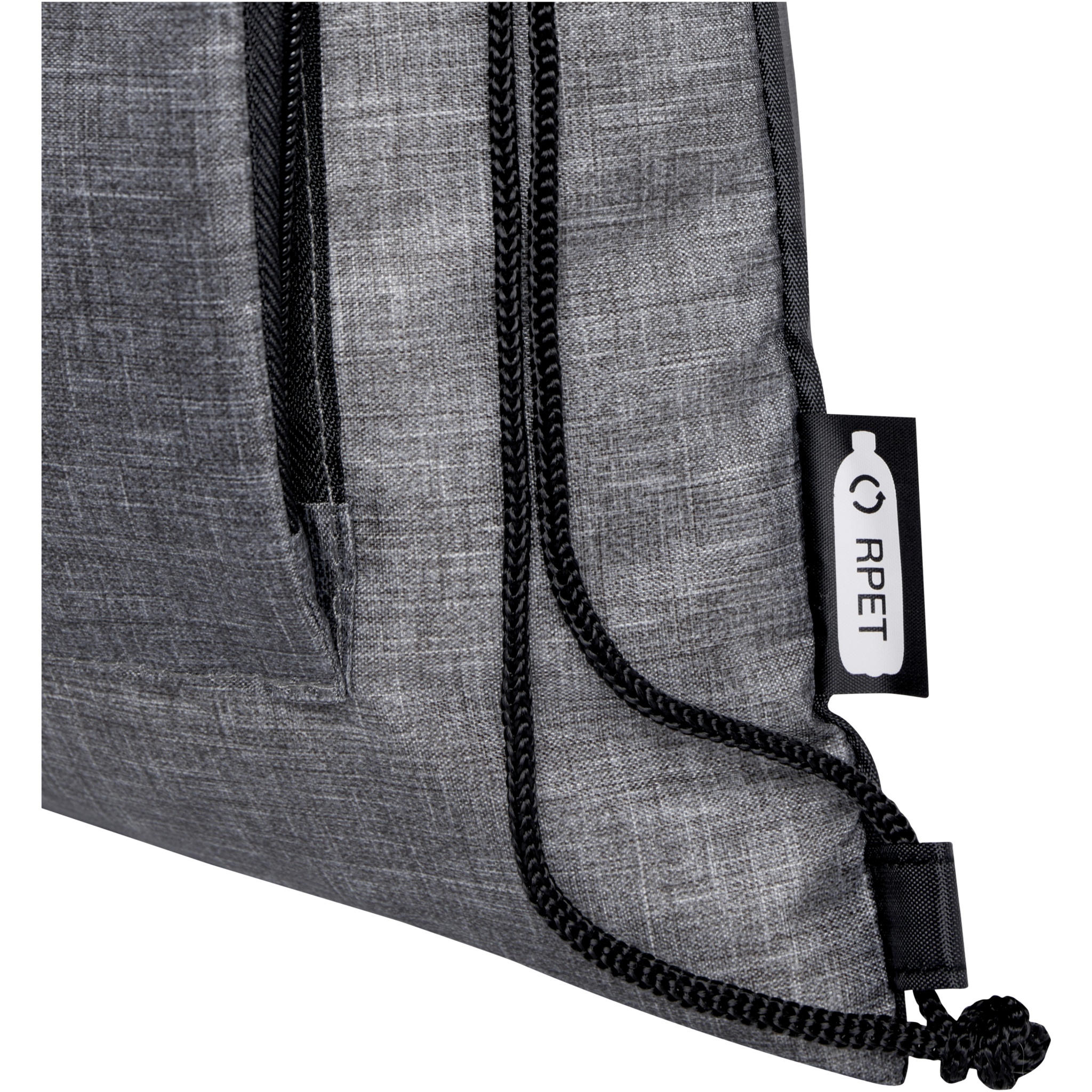 Ash kierrätetty taitettava kassi kiristysnyörillä, 7 litraa, Heather harmaa / tasainen musta