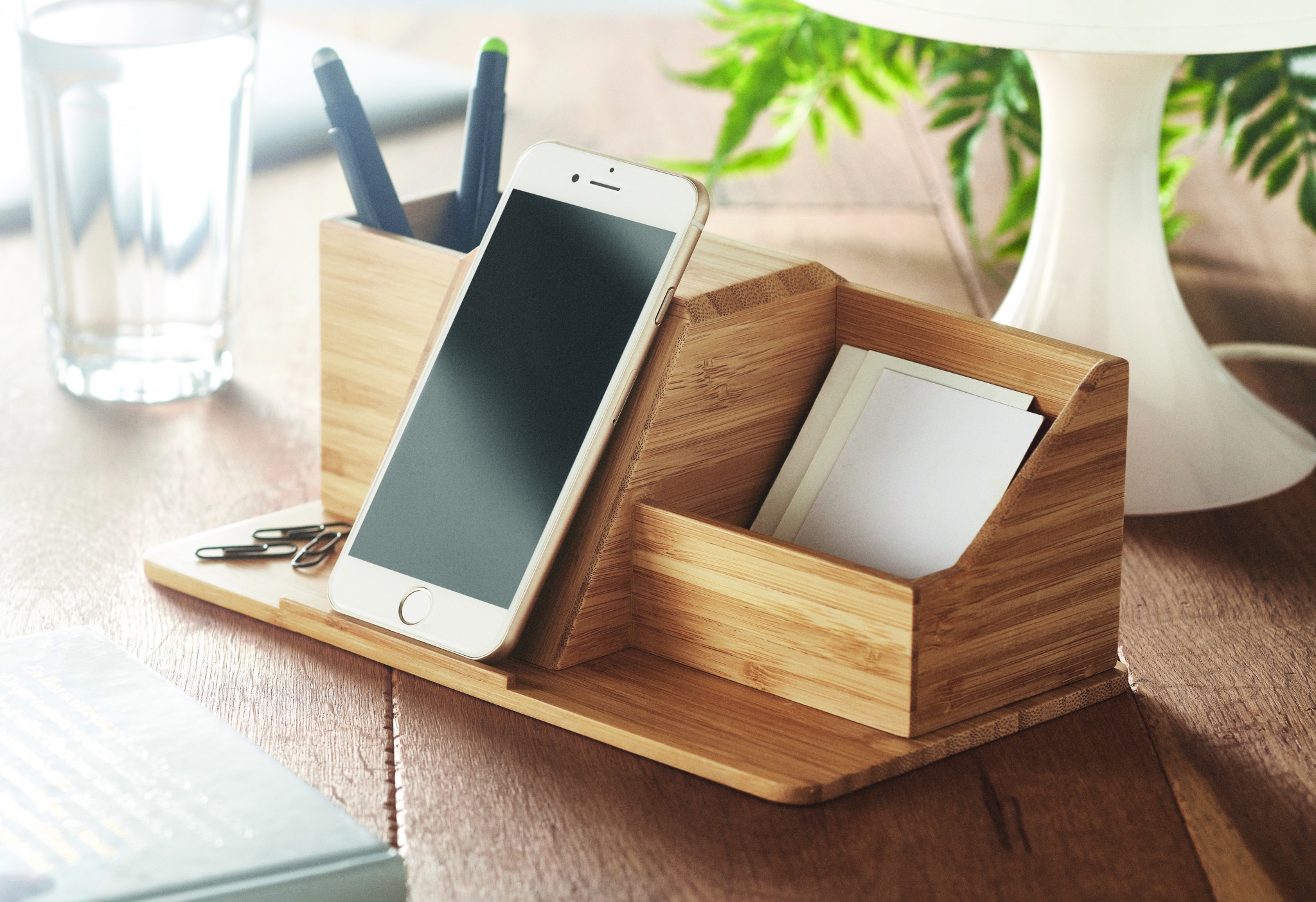 Bambu langaton laturi/ kynäteline, lähtövirta DC 9V/1.1A (10W) Yhdistä laturi tietokoneeseen ja aseta älypuhelin alustalle aloittaaksesi latauksen. Yhteensopiva android, iphone8©, X ja uusimpien laitteiden kanssa. Luonnollisen materiaalin (bambu) vuoksi, tuotteiden värissä/ koossa saattaa olla erinäisyyksiä ja tämä voi vaikuttaa painatuksen lopputulokseen.
