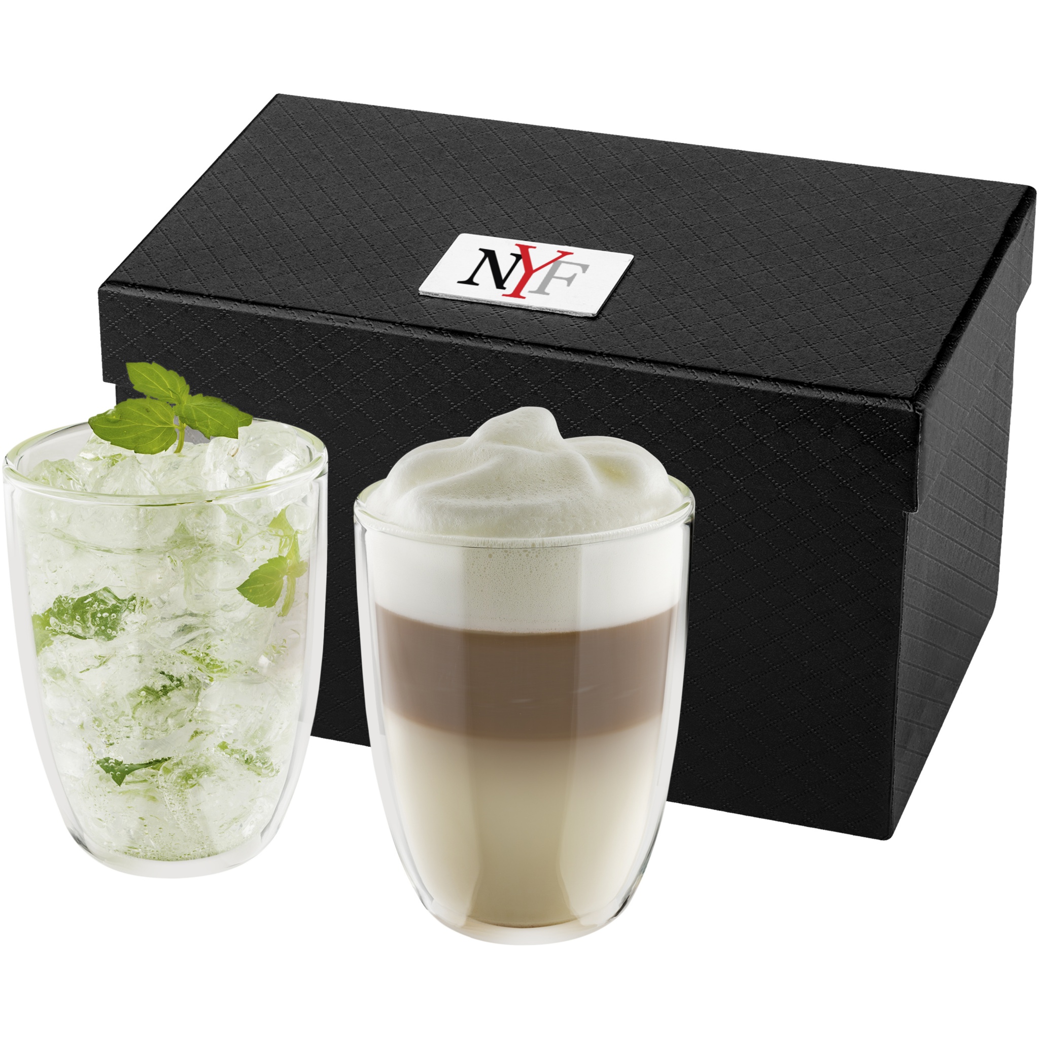 Kaksiseinäinen termoslasisetti. 290 ml. Erinomainen haluamasi latte macchiaton, jääteen tai muun kylmän tai kuuman juoman tarjoiluun. Saatavana ylellisessä lahjalaatikossa. Mukana logolaatta.