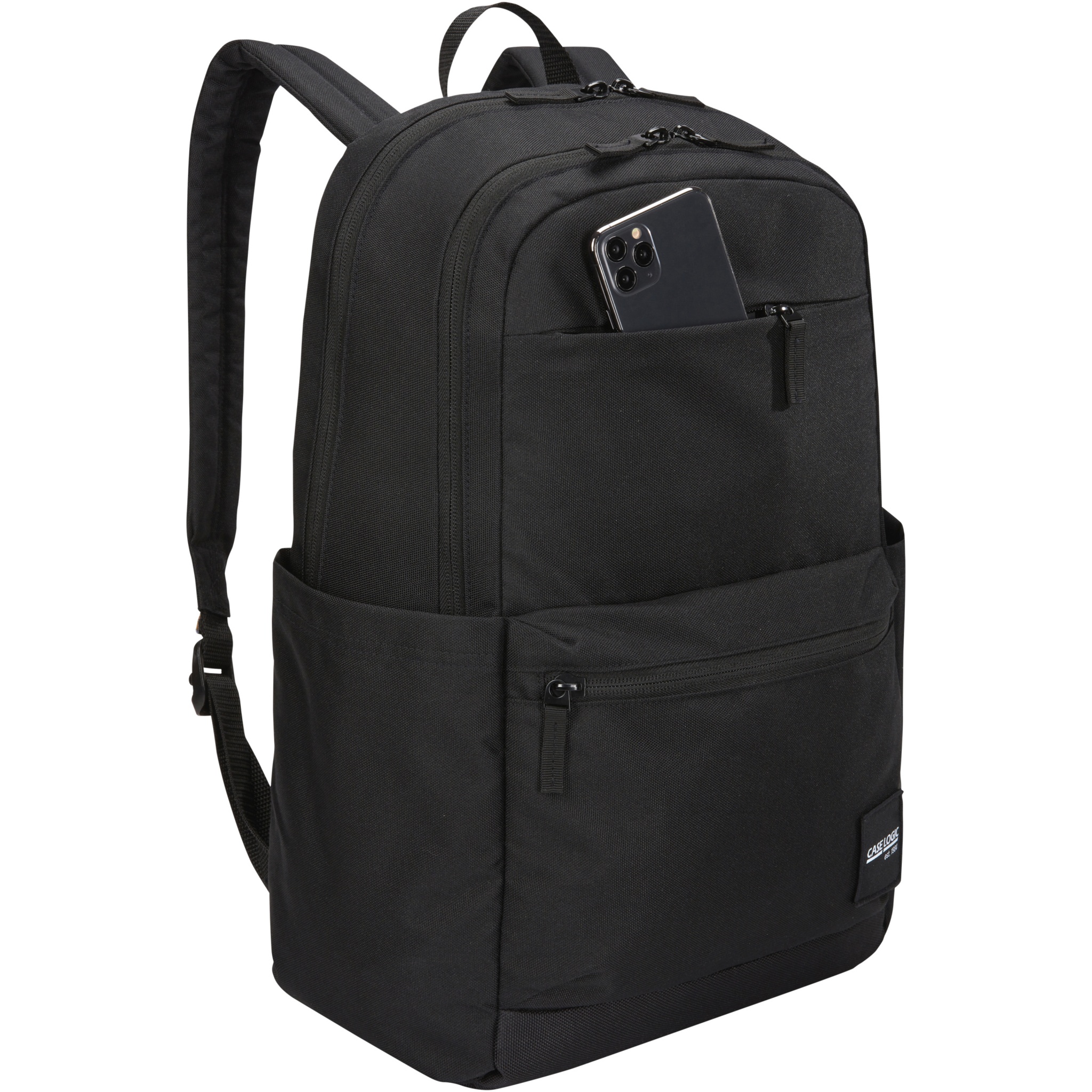 Case Logic Uplink -repussa on 26 litraa säilytystilaa, mukaan lukien kaksi suurta lokeroa, kaksi etutaskua ja runsaasti järjestelytaskuja. Reppu on valmistettu 100-prosenttisesti kierrätetystä 600D-polyesterimateriaalista sekä pehmustetusta, kestävästä 100-prosenttisesti kierrätetystä 1200D-polyesteripohjasta. Muotoiltujen olkahihnojen ja tikatun, täysin pehmustetun takapaneelin ansiosta reppua on mukava kantaa. Siinä on 15,6 tuuman pehmustettu lokero kannettavalle tietokoneelle, 10 tuuman tablettitasku, kaksi suurta sivutaskua vesipullolle tai muille pikkuesineille sekä etutasku pienelle elektroniikalle, kynille ja avaimille. Tilavaan päälokeroon mahtuu kirjoja ja kansioita, ja pienempi lokero sopii muistikirjoille, kuulokkeille ja henkilökohtaisille tavaroille. Lisäksi repussa on pieni vetoketjullinen suojatasku. Helposti avattavaan etutaskuun mahtuu puhelin ja pieniä tarvikkeita.