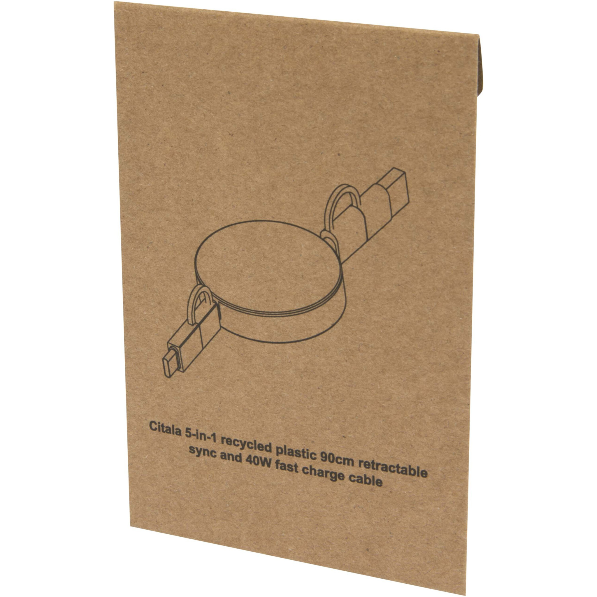 Logotrade liikelahjat kuva: Citala kierrätysmuovinen 40 W:n ja 90 cm:n sisäänvedettävä datasynkronoiva 5-in-1-pikalatauskaapeli