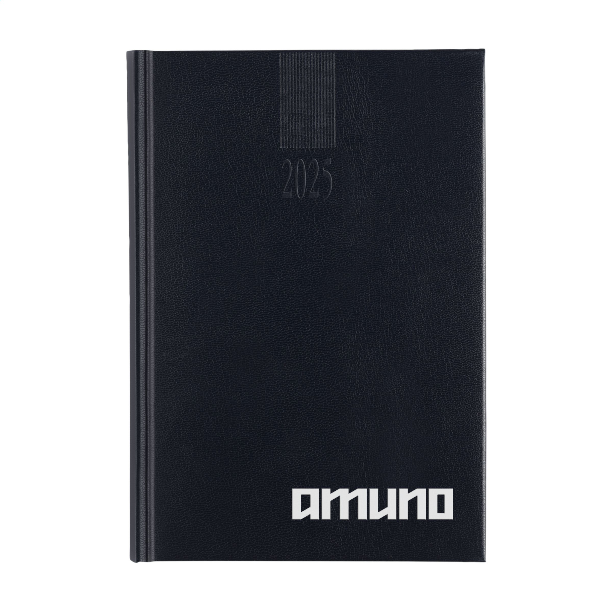 Toimistopäiväkirja neljällä kielellä: EN, NL, F ja D. Kestävä pehmustettu Balacron-kansi ja vuosiluku edessä. 80 g valkoista, FSC Mix -sertifioitua paperia, iso viikkokatsaus kahdelle sivulle, 2-väripainatus, lankasidottu, viikkokatsaus kahdelle sivulle, vuosisuunnittelija kuluva vuosi ja ensi vuosi, lisähyödyllistä tietoa. Lähes A5 kokoa.