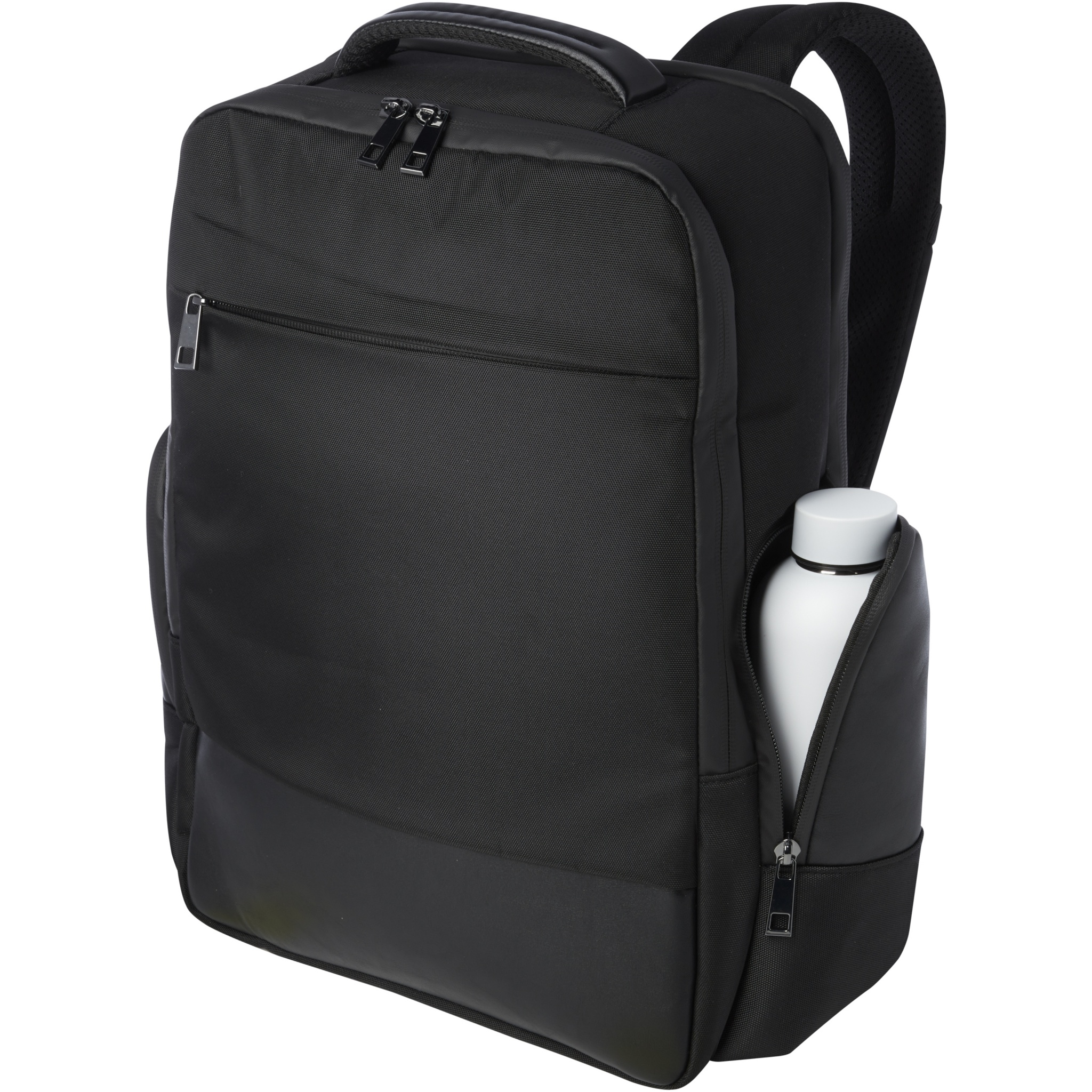 Tyylikäs, isokokoinen ja tukeva GRS-sertifioitu Expedition Pro -reppu kannettavalle tietokoneelle sopii täydellisesti ammattilaisille, jotka matkustavat paljon. Reppu on valmistettu vettä hylkivästä 900D RPET:stä, premium-PU-elementeistä ja RPET-vuorista. Siinä on erillinen 15,6 tuuman lokero kannettavalle tietokoneelle, tablettitasku, tilava päälokero, jossa on vuotamaton tasku hygieniatarvikkeille, useita järjestely- ja sivutaskuja, vetoketjullinen etutasku ja piilotettu tasku aivan takana olevan kantohihnan alla. Repussa on pehmustetut ja säädettävät olkahihnat, kätevä korttitasku, lenkki aurinkolaseille, muotoiltu verkkoselus sekä pehmustettu kahva, jonka ansiosta laukkua on mukava kantaa. Tilavuus: 25 litraa. PVC-vapaa.