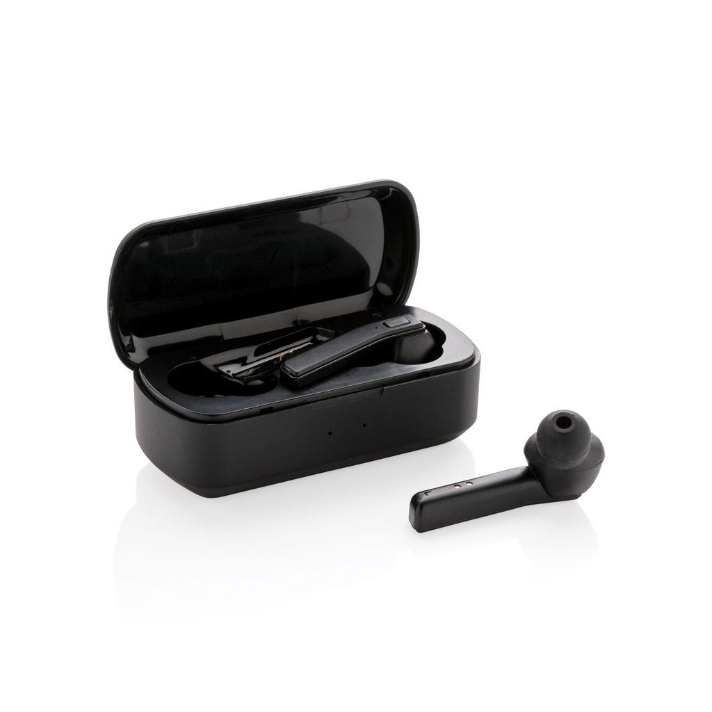 Logotrade mainoslahjat kuva: Free Flow -TWS nappikuulokkeet latausrasiassa
