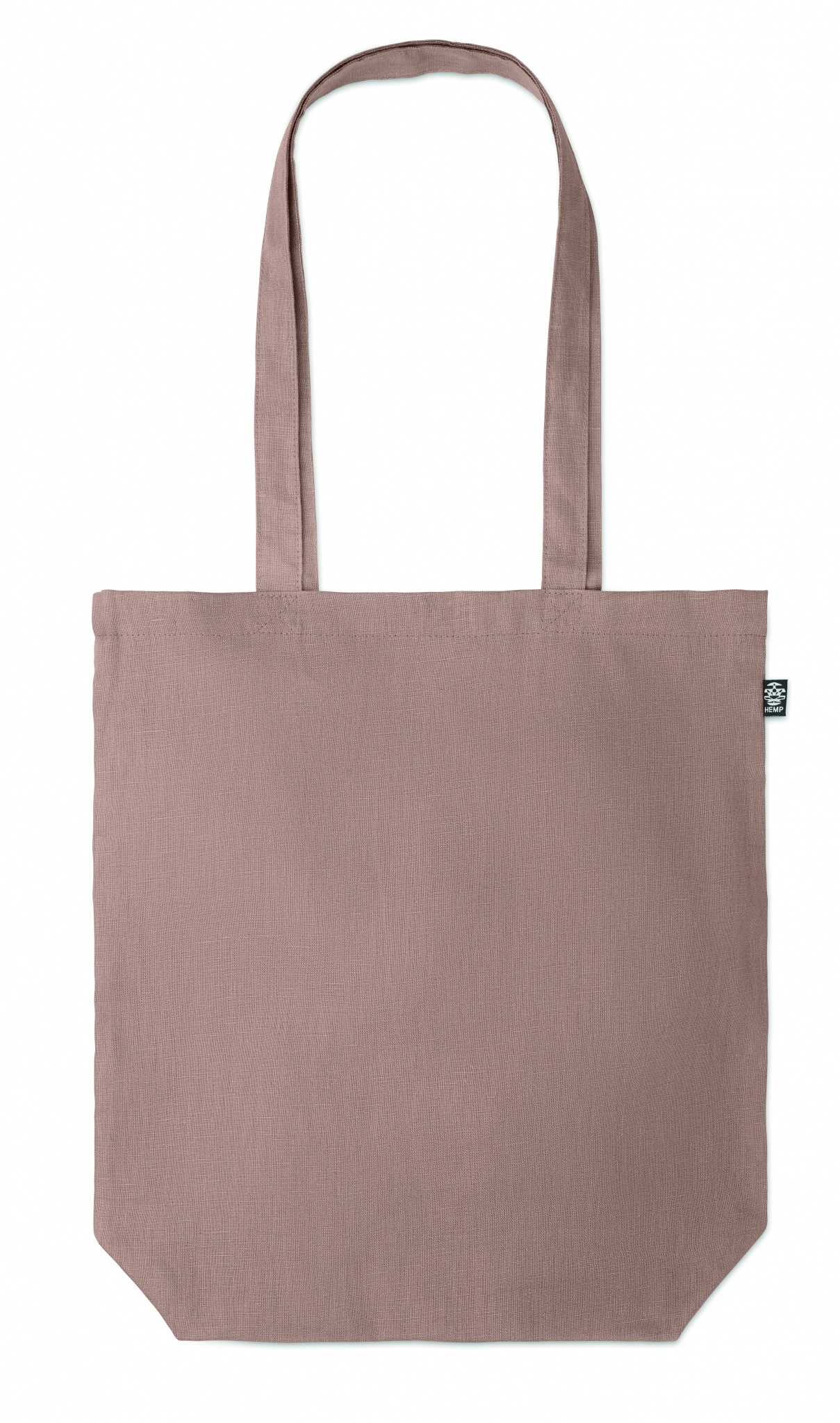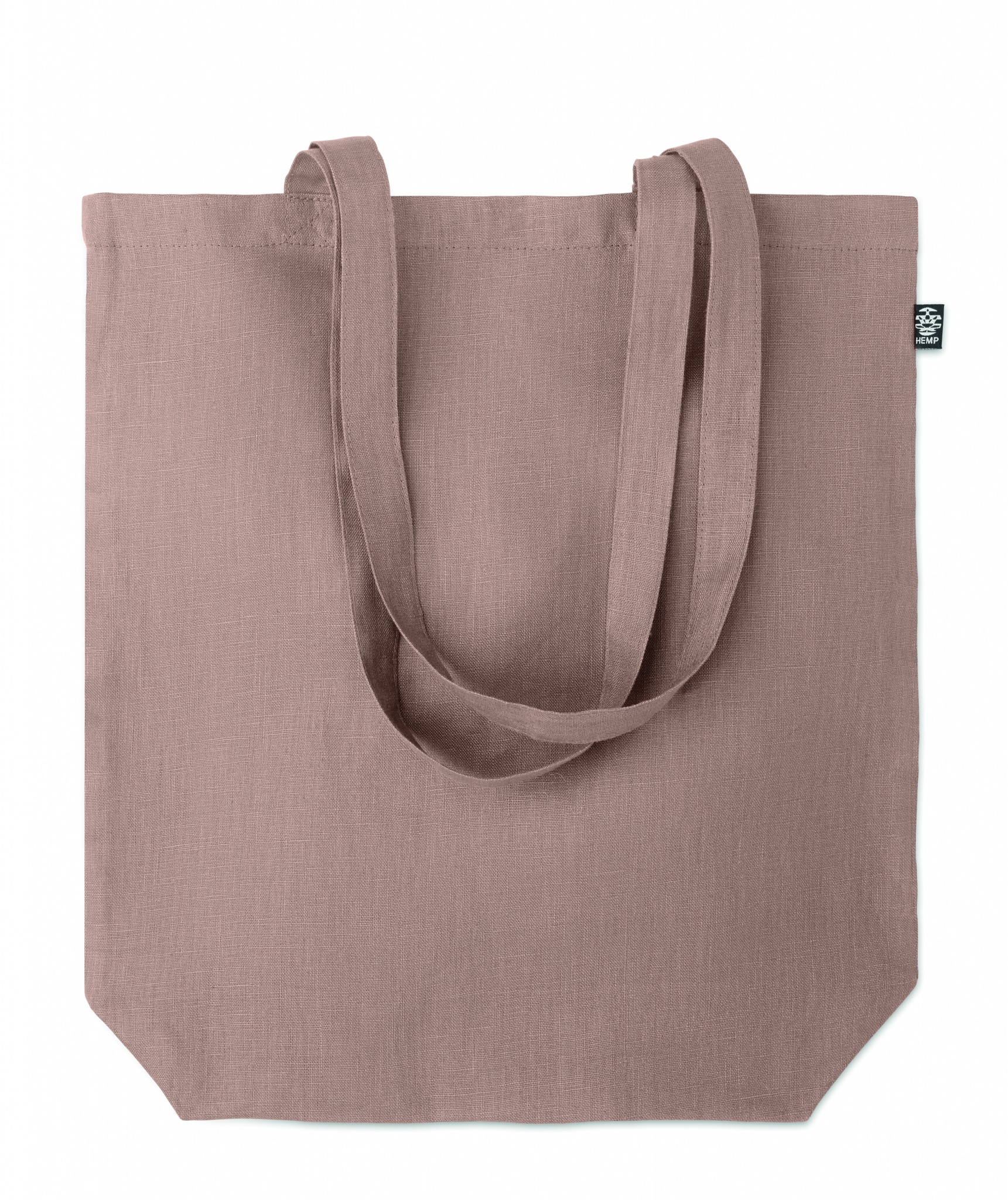 200gr/m² 100% hamppukankaasta valmistettu laukku, pitkillä kahvoilla ja pohja levikkeellä.