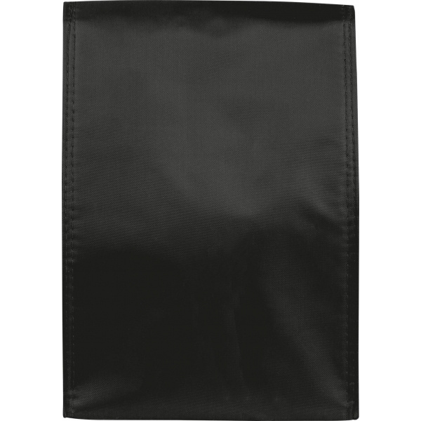 Polyesterijäähdytyspussi, jossa eristävä kalvo sisällä ja tarrakiinnitys. Logosi painetaan toiselle puolelle.