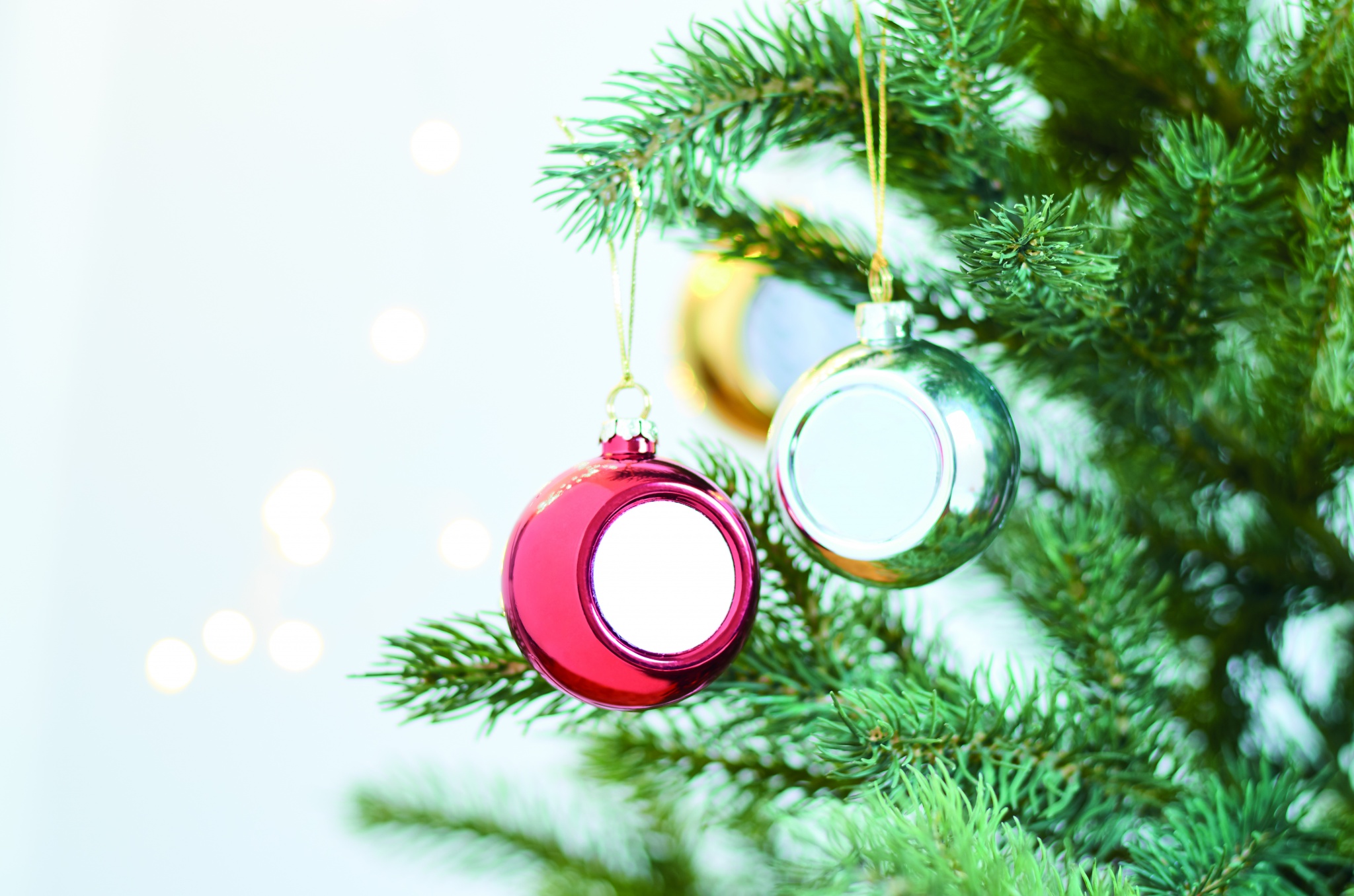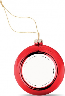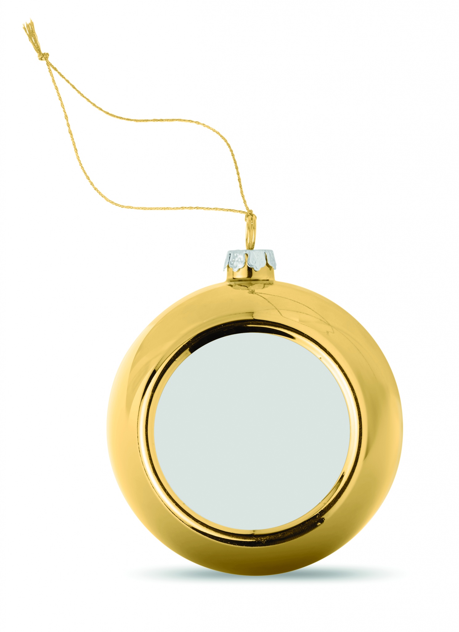 Kiiltävä PP joulupallo, sisältää levyn sublimaatiopainatukseen. Halkaisija 6 cm.