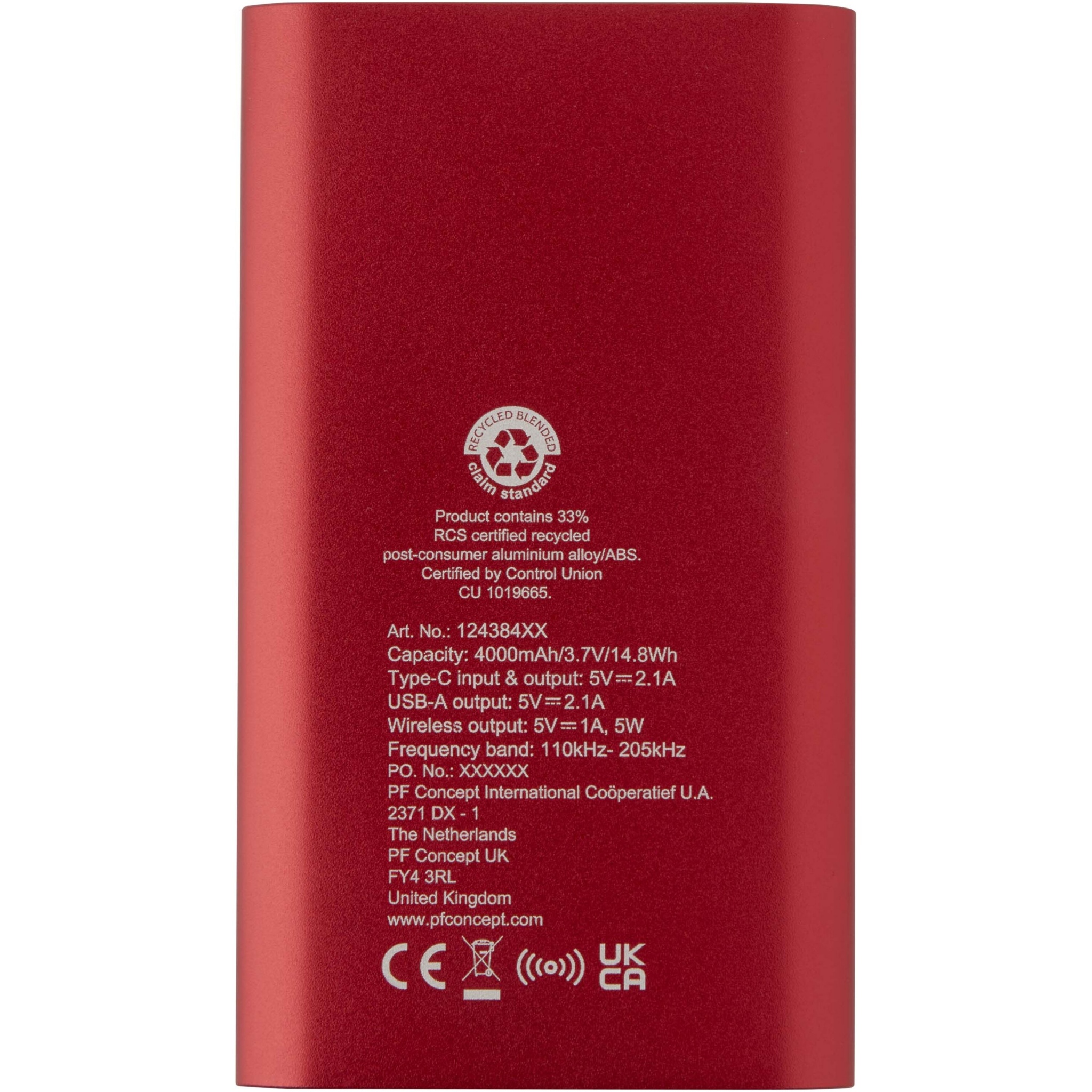 Varavirtalähde Type-C:n tulo-/lähtöportilla ja USB-A-portilla, minkä ansiosta voit ladata kahta laitetta samanaikaisesti. Se tukee myös 5 W:n langatonta latausta kaikille Qi-yhteensopiville laitteille. Varavirtalähteessä on 4 000 mAh:n litiumpolymeeriakku, jonka kokonaislähtöteho on enintään 10 W. Tämä varavirtalähde on valmistettu 28-prosenttisesti RCS-sertifioidusta kierrätysmuovista. Mukana toimitetaan TPE Type-C to USB-A -latauskaapeli.