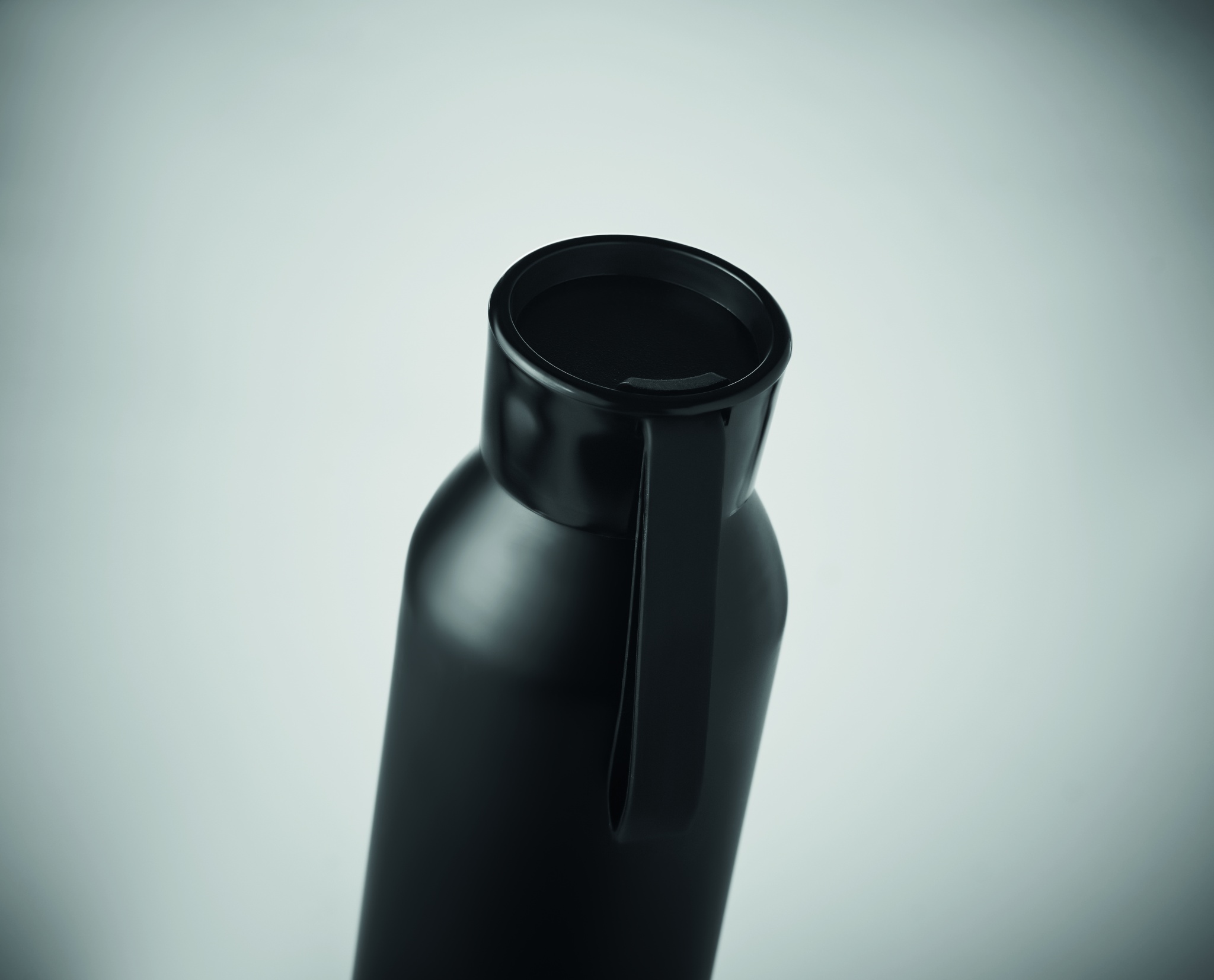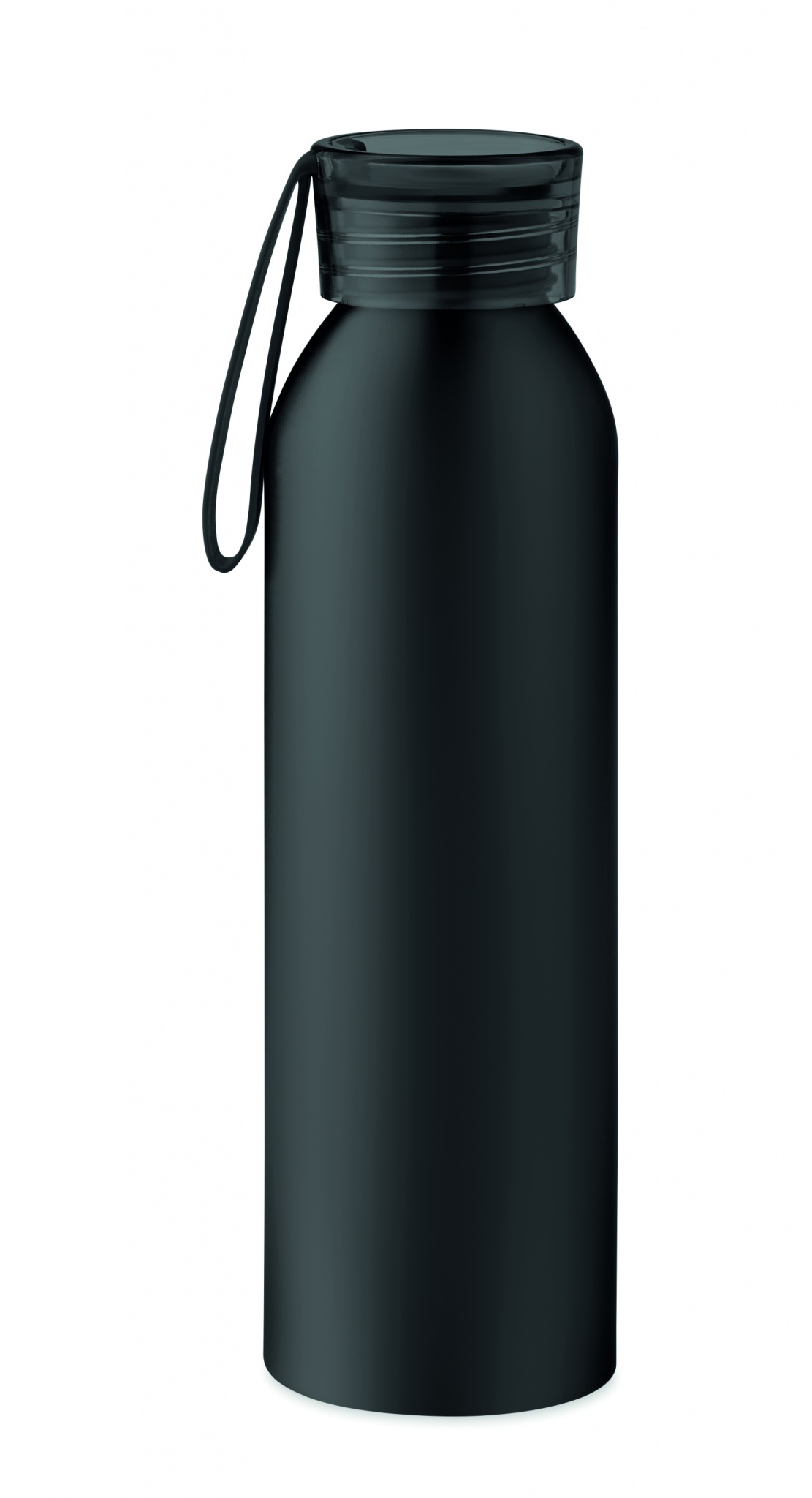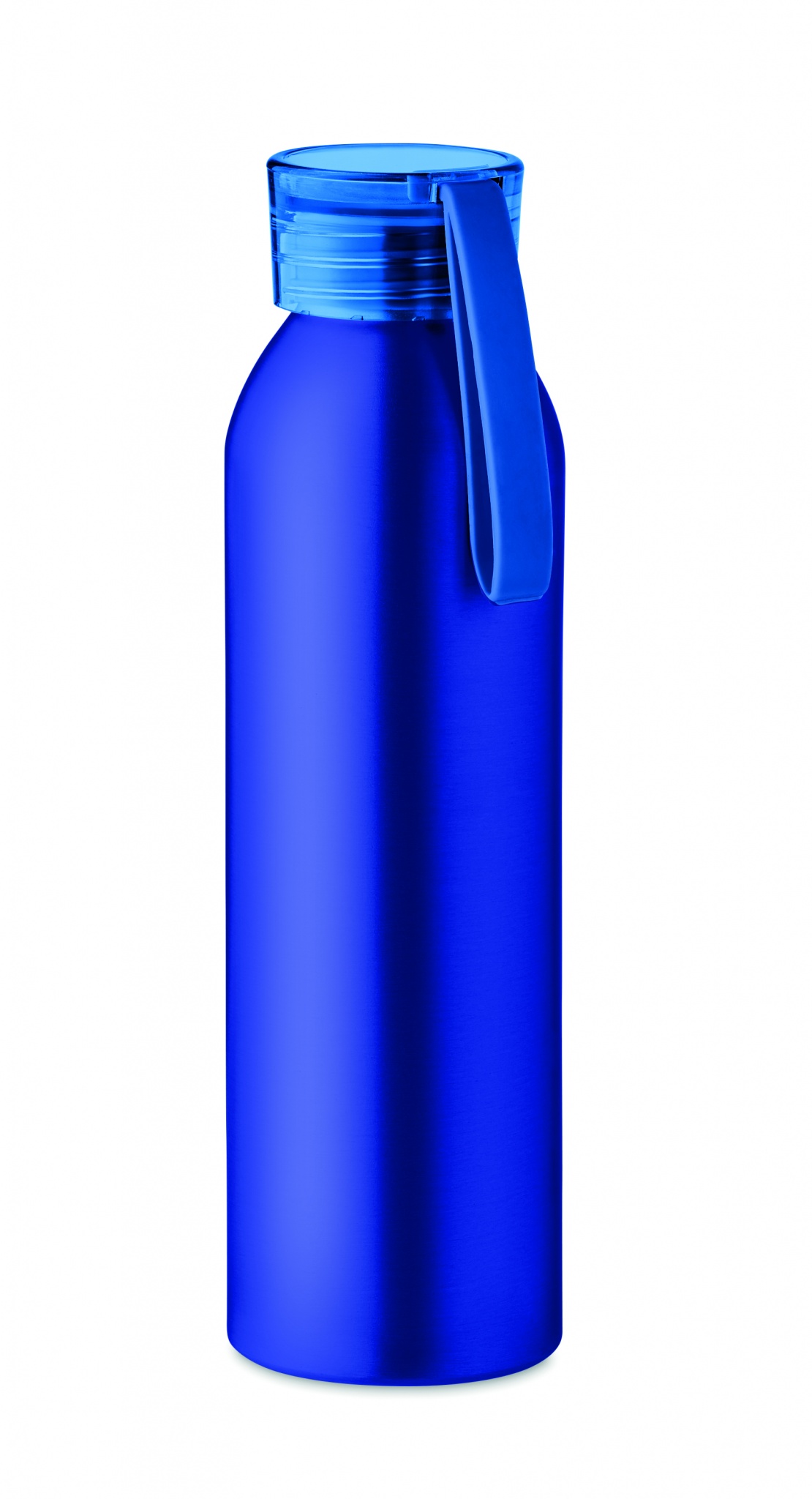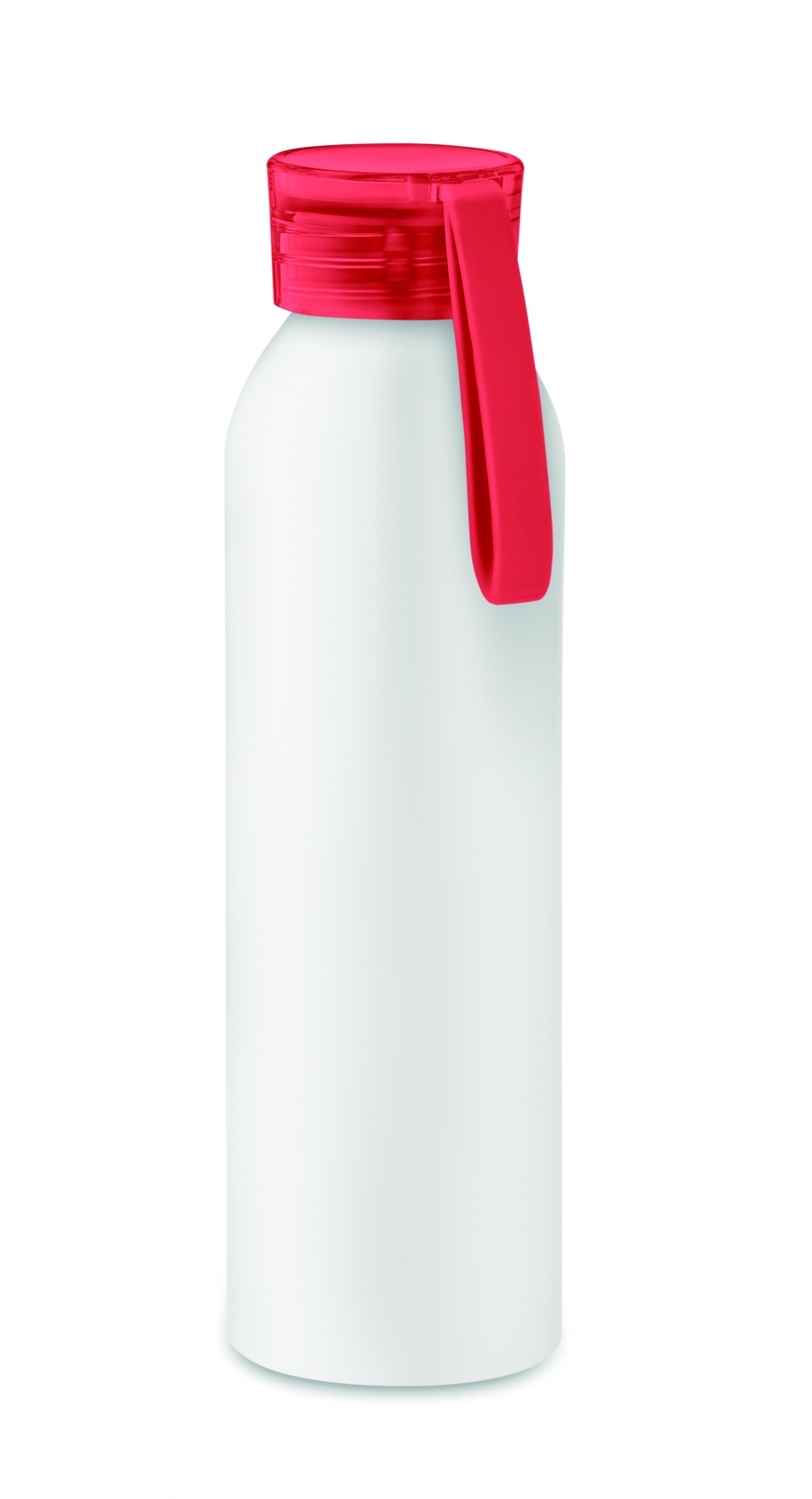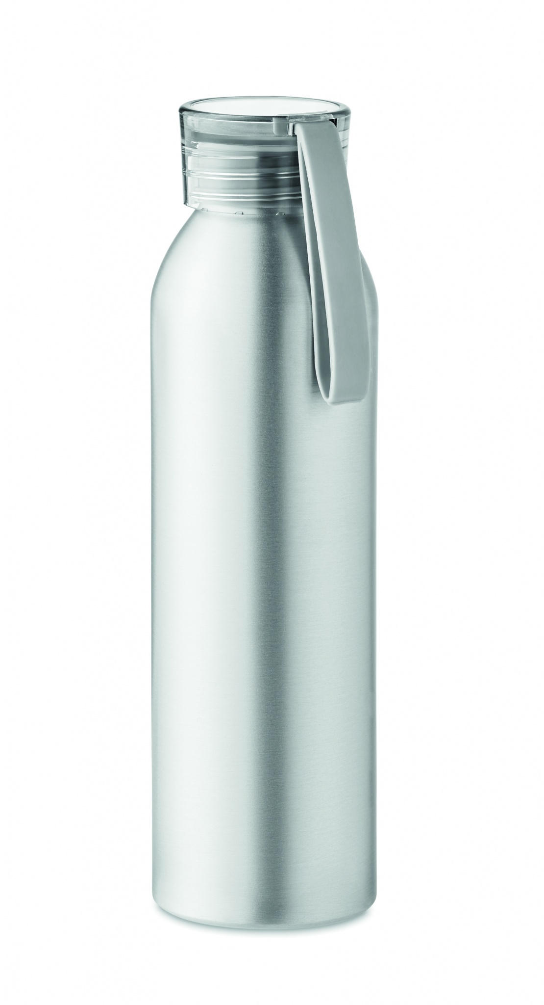 Yksiseinäinen alumiinipullo kierrätetystä alumiinista muovikorkilla ja silikoniripustimella. Tilavuus: 600ml. Yksinkertainen ja kevyt pullo on ihanteellinen päivittäiseen käyttöön, ja se sopii erinomaisesti lisäämään brändisi näkyvyyttä. On tärkeää pysyä nesteytettynä päivän aikana, joten täytä tämä pullo vedellä ja pidä se aina mukana! Vuotamaton.