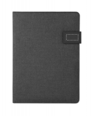 Pellava/PU A4 kokouskansio, jossa magneettisuljin. Sisäänrakennettu varavirtalähde 4000 mAh:n kapasiteetilla, joka riittää älypuhelimen lataamiseen 1-2 kertaa mallista riippuen. Sisäänrakennettu mikro-USB C- tyypin liitin. Sisältää matkapuhelintelineen, 20-sivuisen lehtiön ja useita pieniä taskuja helppoa säilytystä varten.