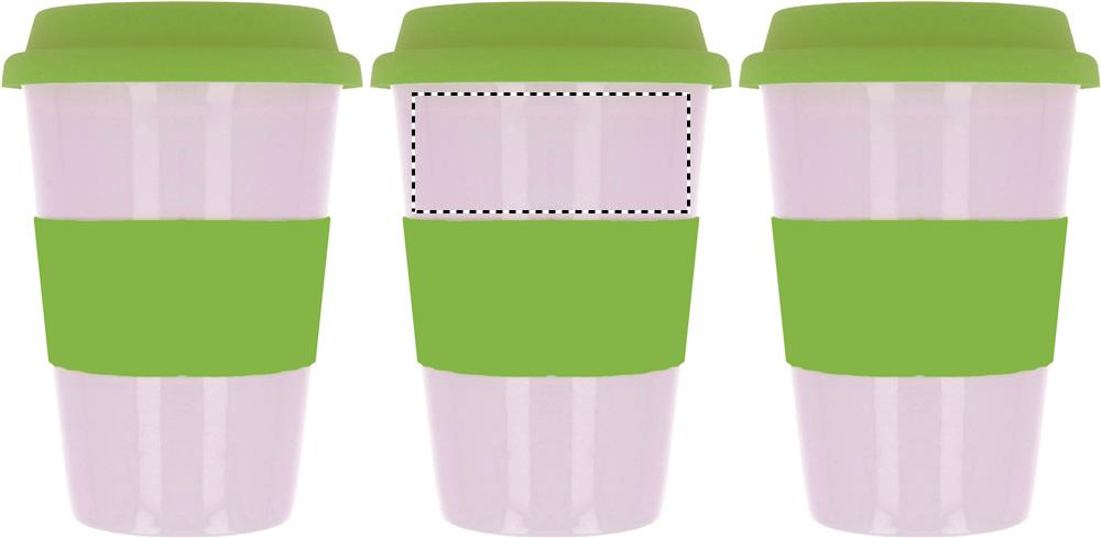 Yksiseinäinen 400 ml keraaminen muki silikonikannella ja silikonisella vyöteellä, tuote ei ole mikroaaltouunin kestävä. Keraaminen painatus on konepesun kestävä. Tuote saattaa kuumentua ulkopuolelta käytössä.