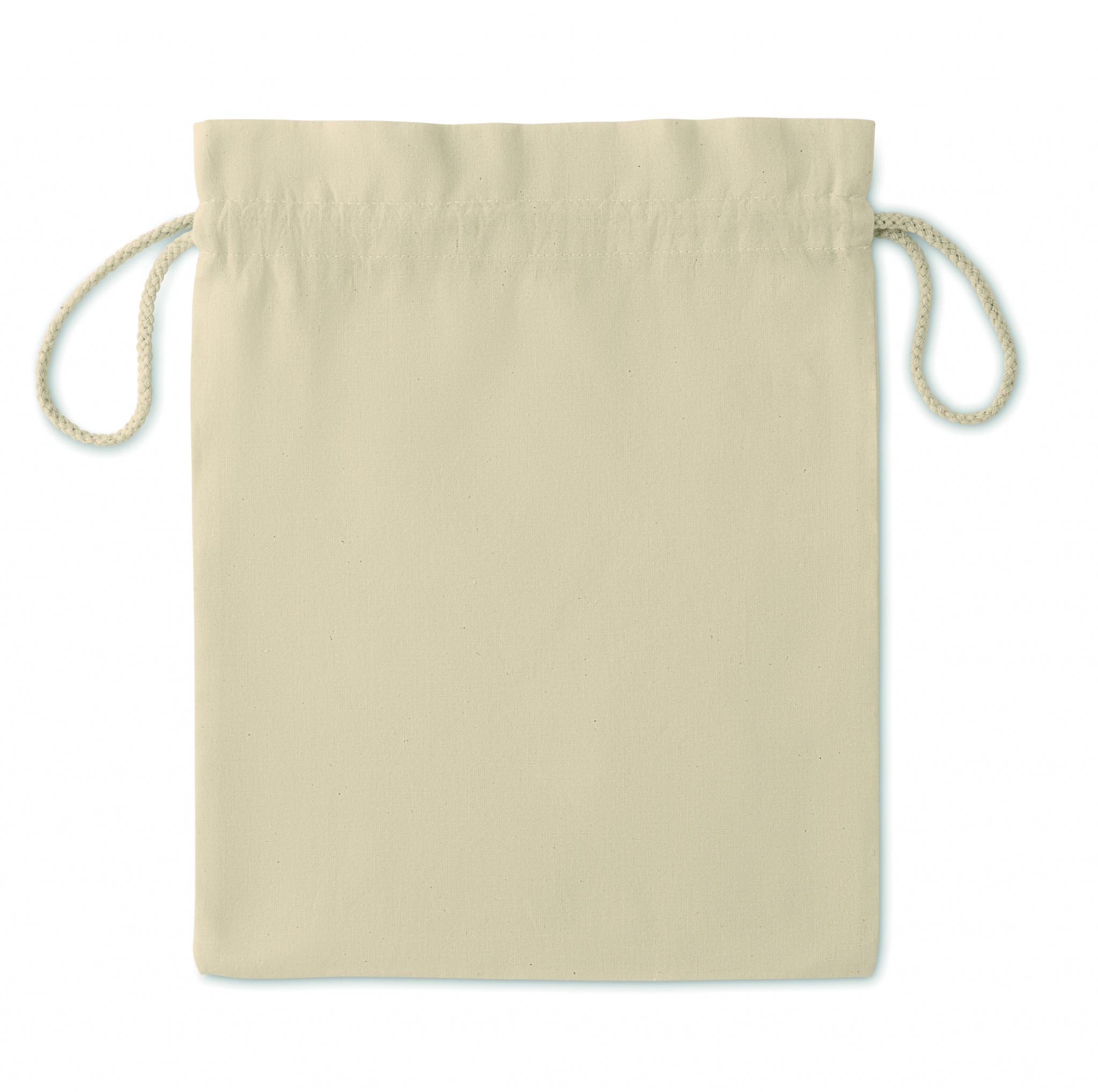 105 gr/m² keskikokoinen puuvilla lahjapussi narukiristyksellä, 25 x 32 cm.