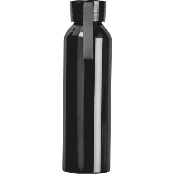 Kierrätetystä alumiinista valmistettu vesipullo, jossa muovikansi, silikoninen kantohihna ja tilavuus 600 ml. Ympäristöystävällinen ja käytännöllinen tien päällä.