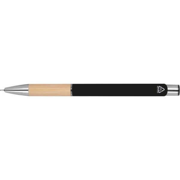 Kierrätetystä alumiinista valmistettu puoligeelikynä kumipinnoitteella. Siinä on myös bambupitoinen otealue, sinikirjoitus muovitäyttö (0,5 mm kärki) ja hopeakoriste.