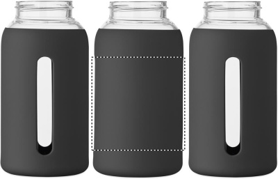 Korkea borosilikaattilasista valmistettu pullo, jossa silikoninen pussi ja kahvallinen PP-korkki. Tilavuus: 600 ml