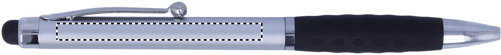ABS- muovinen kuulakärkikynä kiertomekanismilla ja kosketusnäyttöpäällä. Metallimainen lopputulos ja pehmeä grippi, sininen muste.