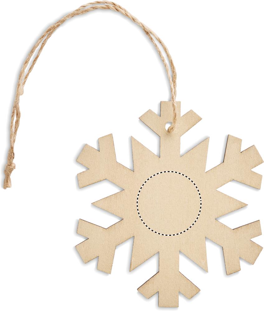 Puinen MDF lumihiutaleen muotoinen kuusenkoriste juuttilankaripustimella. Luonnollisen materiaalin (MDF) vuoksi, tuotteiden värissä/ koossa saattaa olla erinäisyyksiä ja tämä voi vaikuttaa painatuksen lopputulokseen.