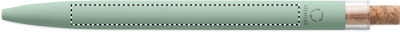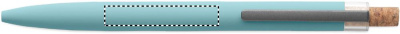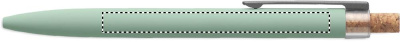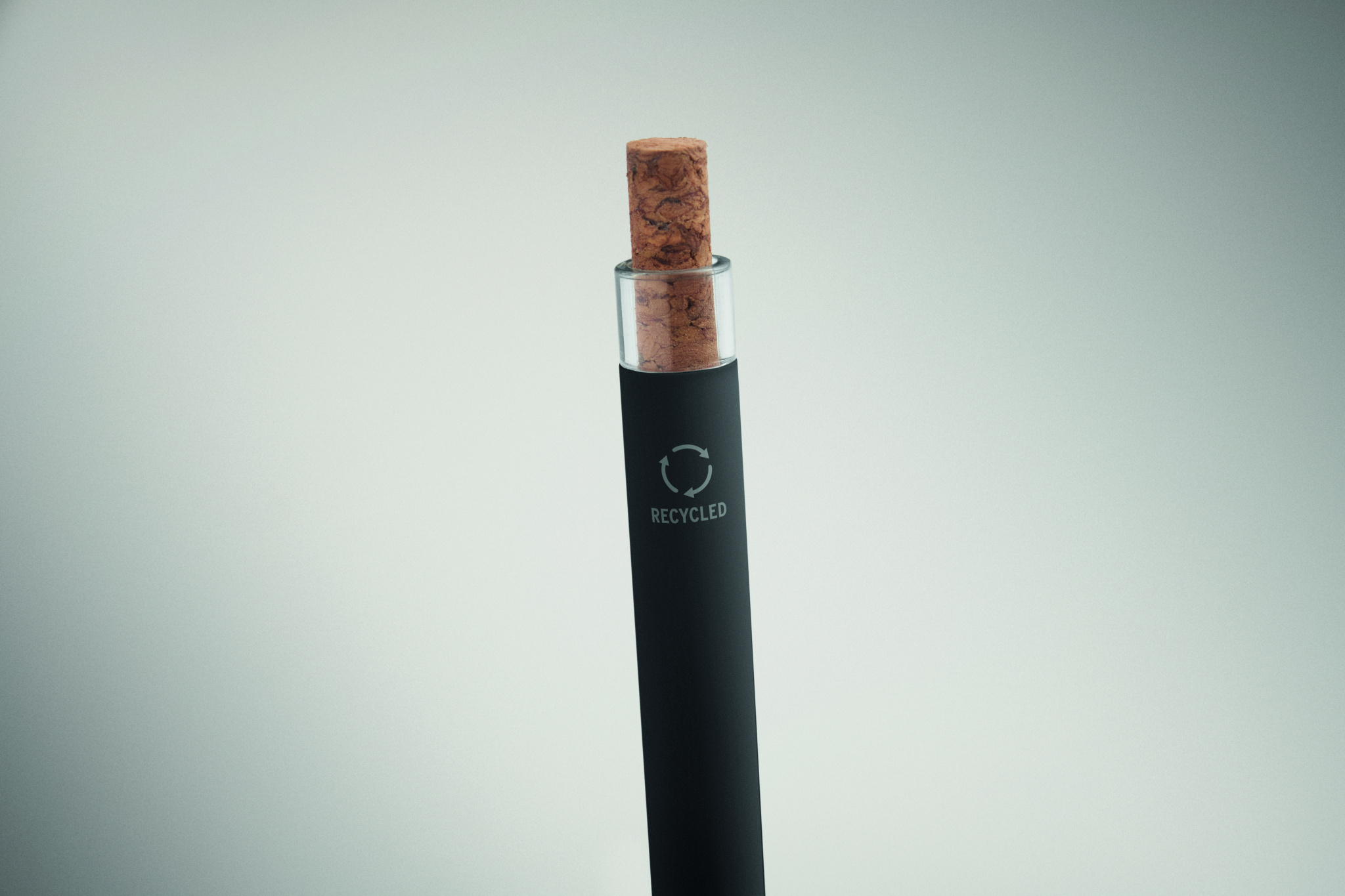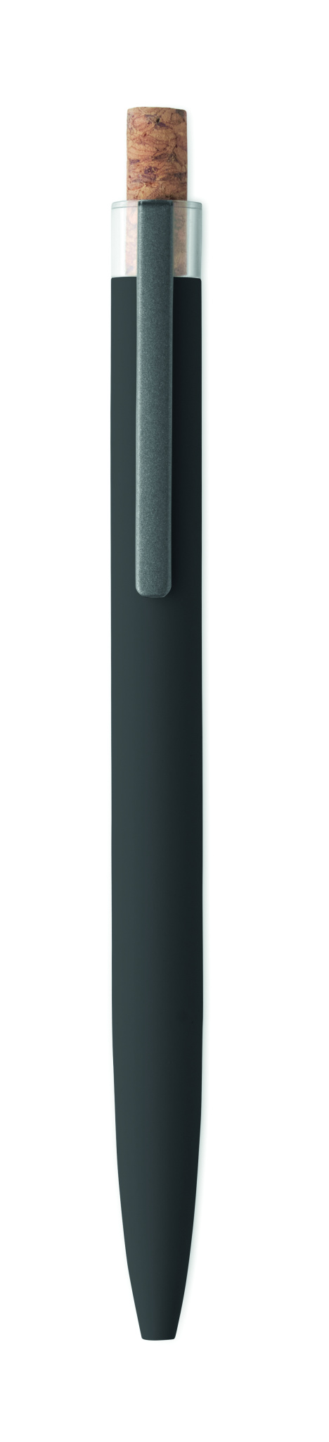 Kierrätysalumiinista valmistettu kuulakärkikynä, jossa on korkkipainike ja metalliklipsi . Sininen muste.