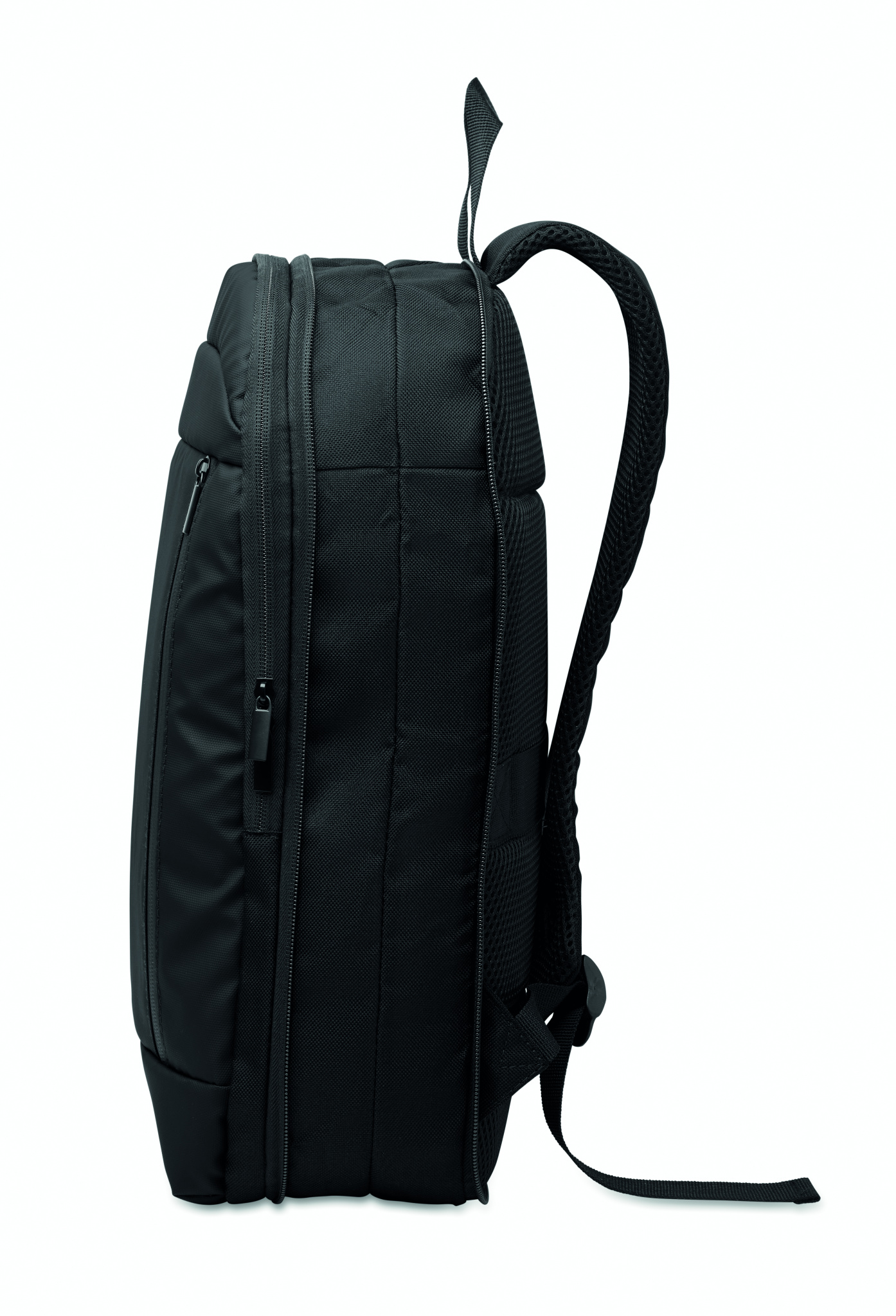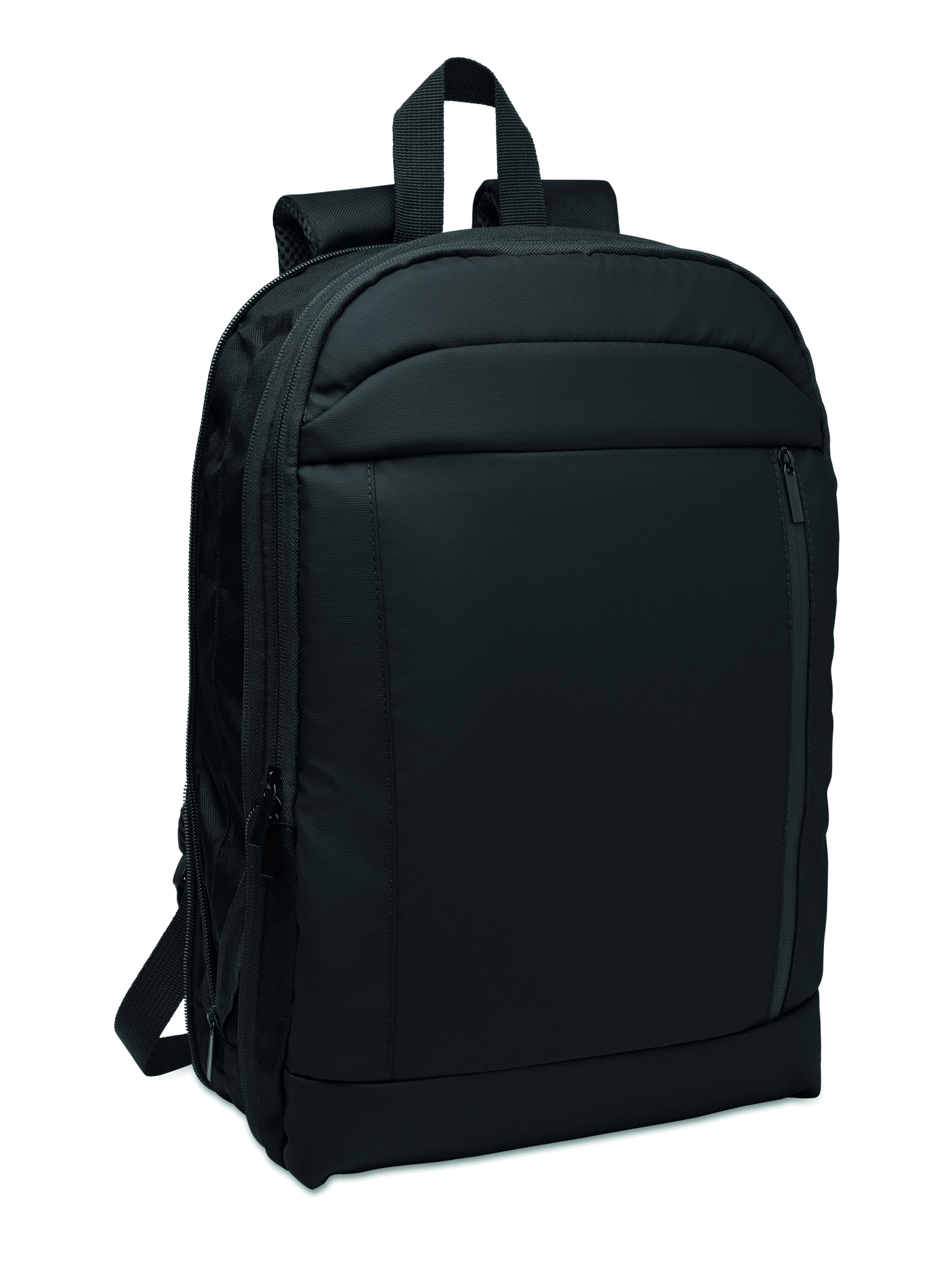 Laajennettava 600D RPET-polyesteristä valmistettu 16'' tietokonereppu, jossa on PU-pinnoite edessä ja RPET-polyesterivuori. Piilotettu vetoketjullinen tasku ja pehmustettu kannettavan tietokoneen lokero, etulokero , mesh-selkäosa ja matkatavarahihna.