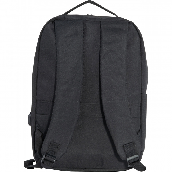 Polyesteristä valmistettu läppärireppu 15-tuumaisille kannettaville tietokoneille. Siinä on kaksi vetoketjullista etutaskua, suuri päätasku läppäritaskulla, useita sivutaskuja, pehmustetut olkahihnat, kantokahva ja hihna kärryyn kiinnittämistä varten. Logosi on painettu etutaskuun.