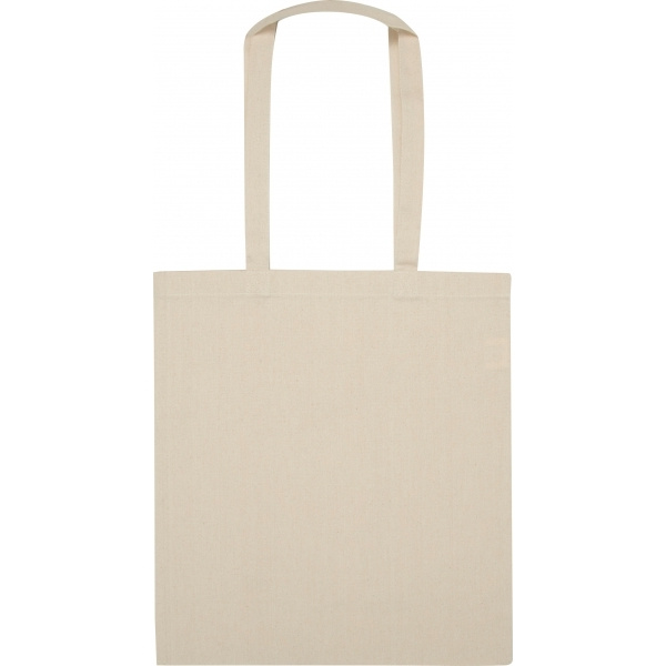 Öko-Tex® STANDARD 100 -sertifioitu luomupuuvillapussi, jonka neliömassa on 220 g/m² ja kaksi pitkää kahvaa. Painamme logosi pussin keskelle toiselle puolelle.
