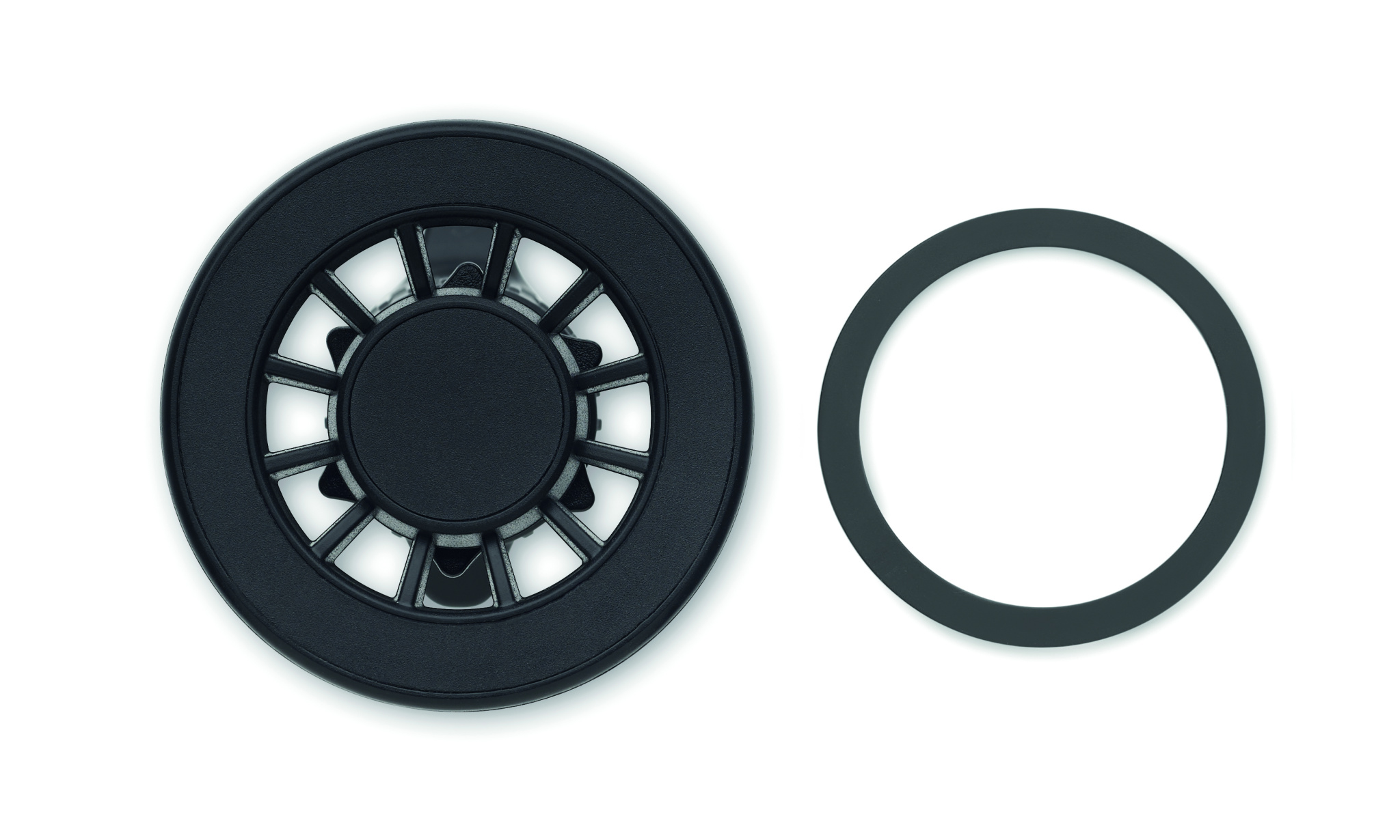 360 astetta pyörivä magneettinen tuuletusaukkoon kiinnitettävä puhelinteline ABS-materiaalia. Sisältää ylimääräisen magneettisen metallirenkaan, joka tukee ei-magneettisten langattomien ladattavien puhelimien lataamista.