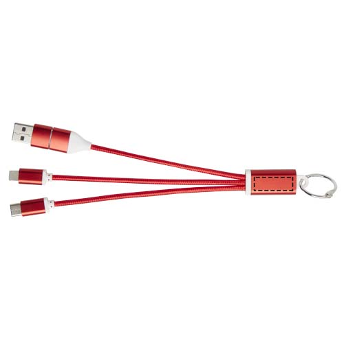 Metal kierrätetystä alumiinista valmistettu 4-in-1-latauskaapeli avaimenperällä, Punainen