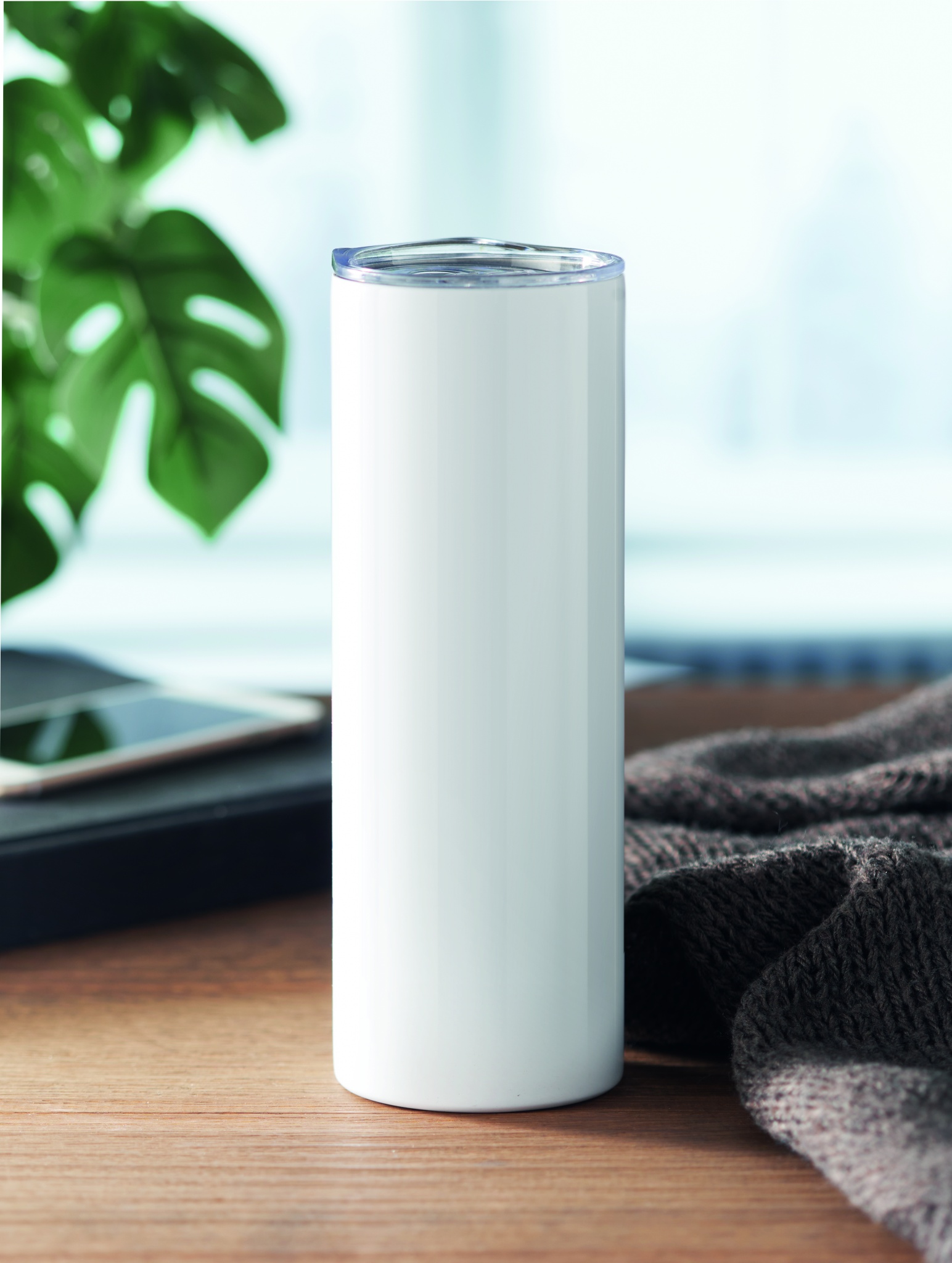 Kaksiseinäinen ruostumattomasta teräksestä valmistettu 590 ml muki PS kannella ja erikoispinnoite sublimaatio painatukseen.