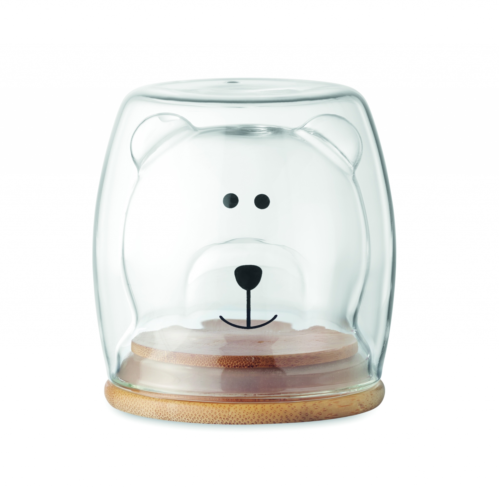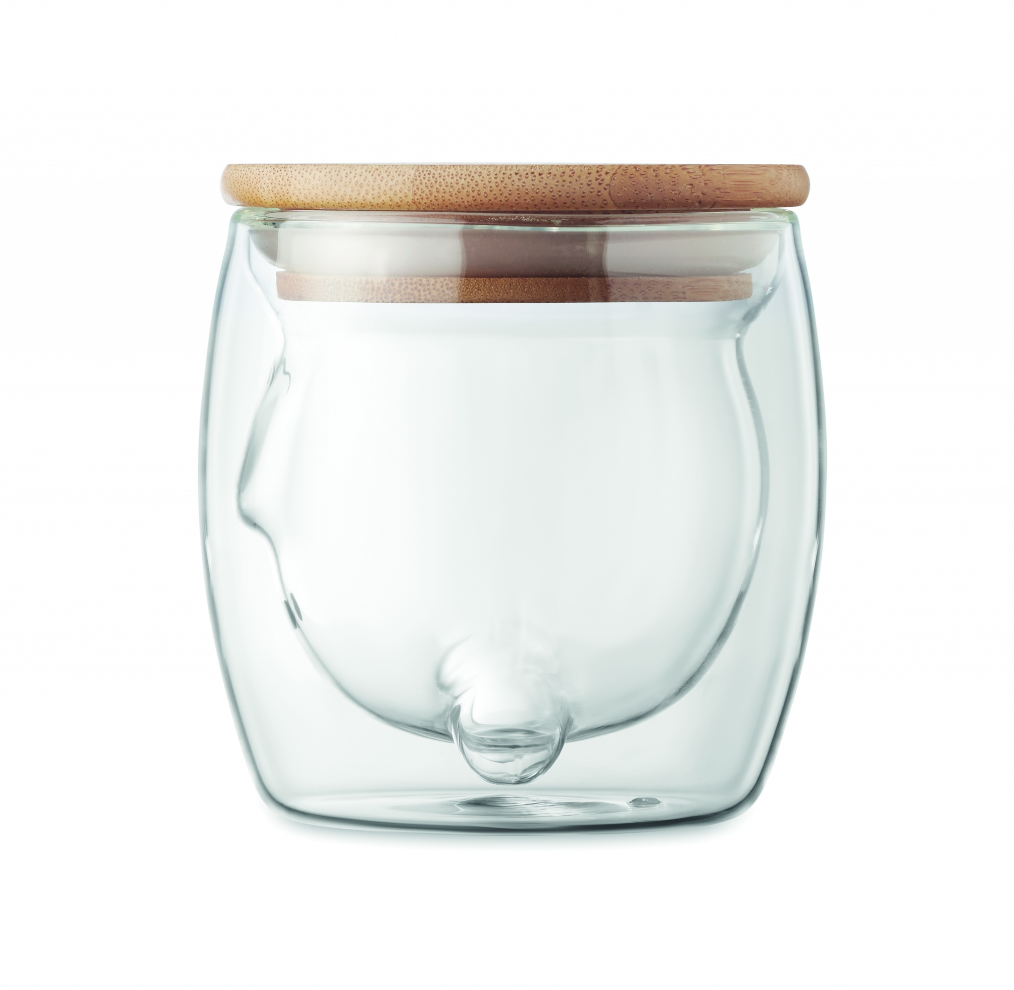 Kaksiseinäinen 260 ml borosilikaattilasi karhunkasvokuvioinnilla ja bambukannella.