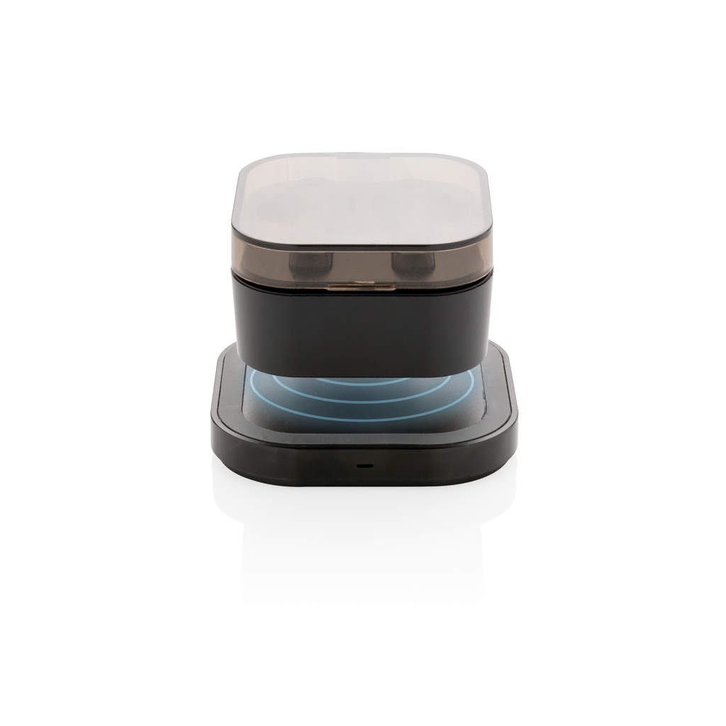 Logotrade liikelahjat mainoslahjat tuotekuva: Mustat TWS-kuulokkeet ja langaton latauskotelo