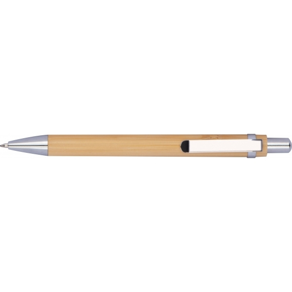 Musteeton kuulakärkikynä bambusta. Lyijy on valmistettu grafiitin ja metallin sekoituksesta, mikä tekee siitä erittäin kestävän. Laserkaiverramme logosi pidikkeen oikealle puolelle